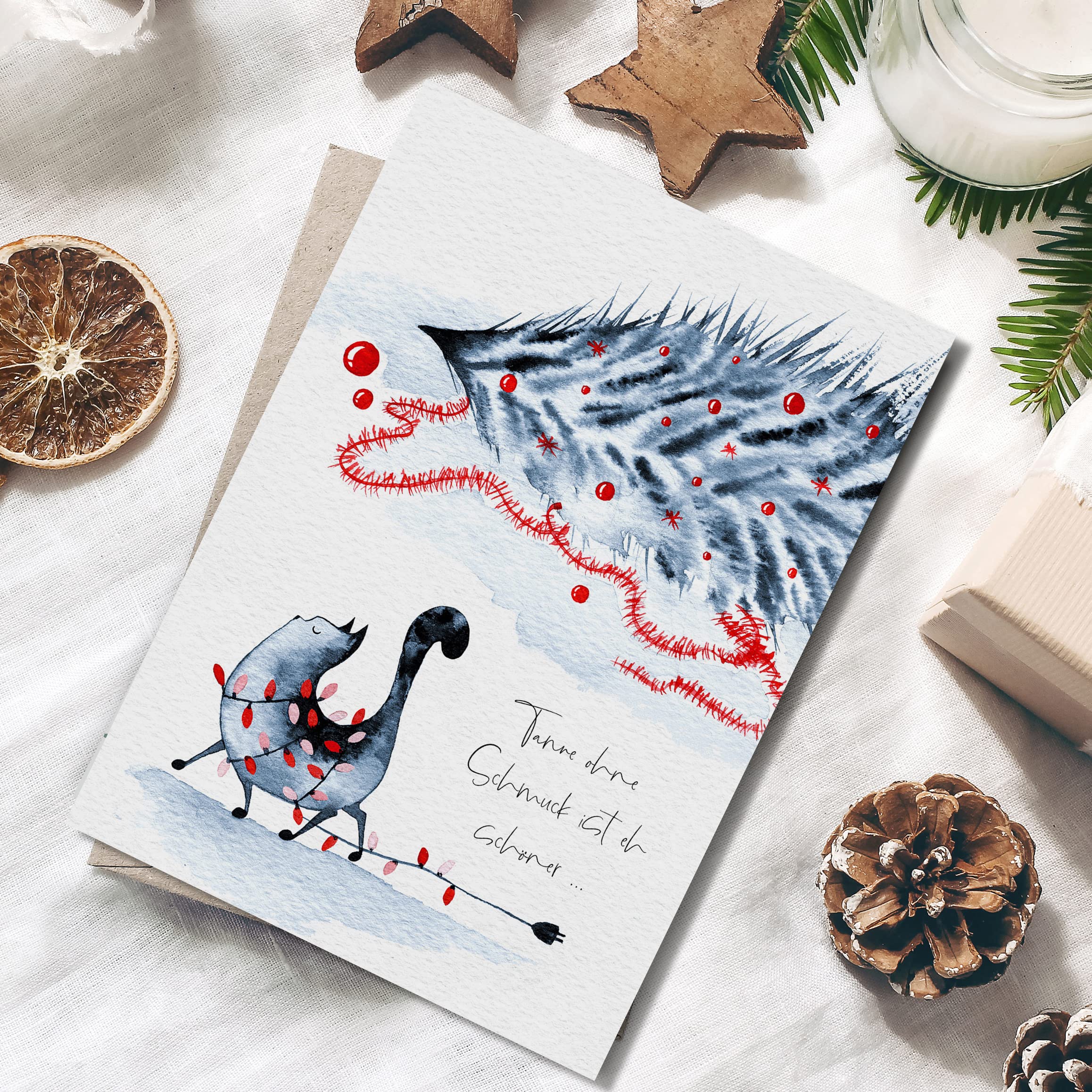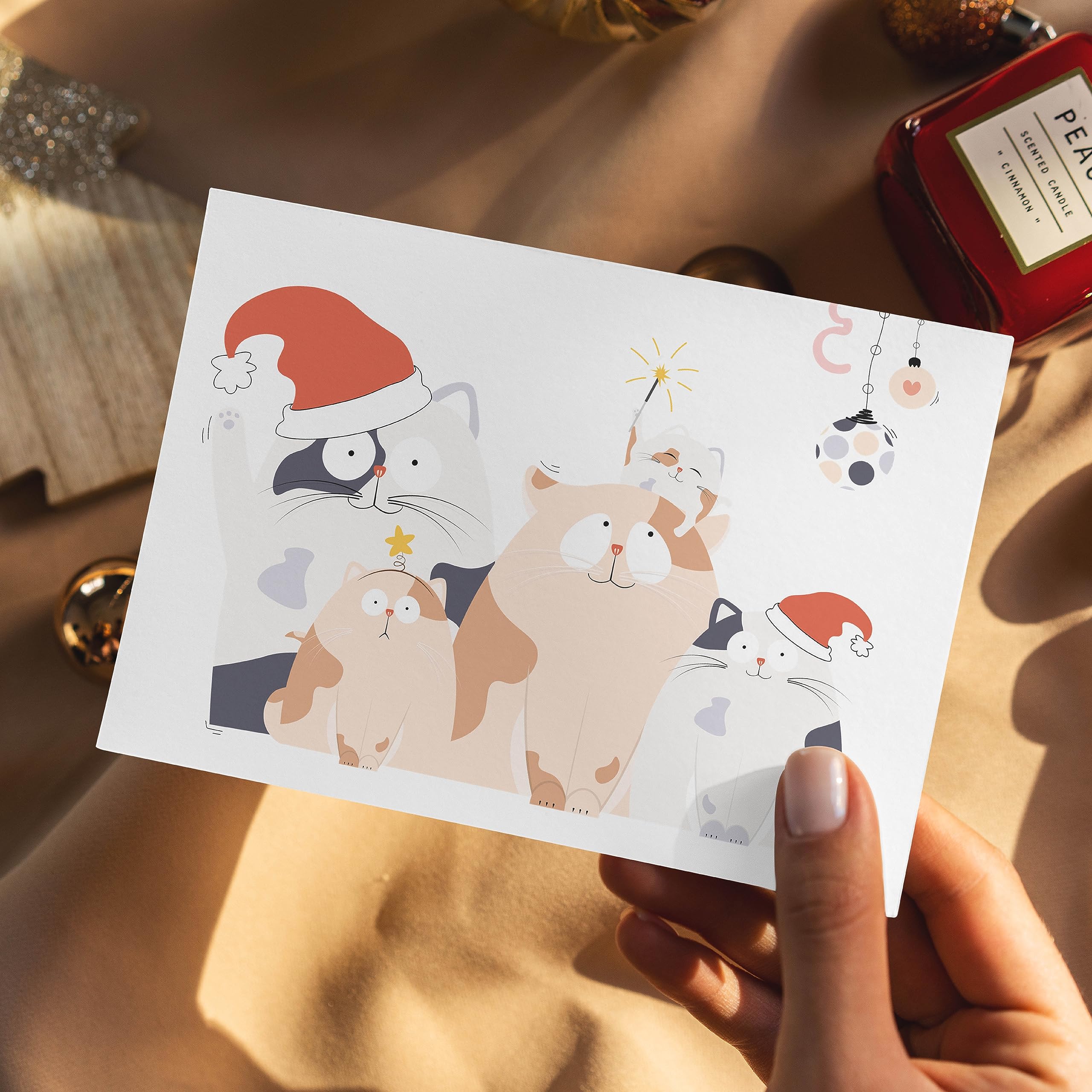 【Individuell gestaltbar】- Die Innenseite ist leer, damit Sie Ihre persönlichen Weihnachtsgrüße, liebevollen Botschaften oder Jahresrückblicke handschriftlich hinzufügen können – ein ganz persönliches Geschenk. Praktische Größe: Die gefaltete Größe von 18x12 cm und der passende Umschlag mit 13,7x19,4 cm machen das Versenden oder Überreichen der Karte zu einer mühelosen Angelegenheit. Christmas Cards Weihnachtskarte Lustig Postkarte Weihnachten Weihnachtskarten (Haus Vom Weihnachtskarten Lustig Gestalten Sie persönliche Grüße: Die leeren Innenseiten bieten ausreichend Platz für Ihre kreativen Weihnachtsbotschaften. Sie kann auch als originelle Weihnachtsdeko verwendet werden, um Ihre Festtagsstimmung zu unterstreichen. Mit ihrem charmanten Motiv einer schwarzen Katze, die in einer Lichterkette spielt, und dem humorvollen Spruch „Tanne ohne Schmuck ist eh schöner“, zaubert diese Karte garantiert ein Lächeln auf die Gesichter Ihrer Liebsten. Diese Weihnachtskarte vereint humorvolles Design und hochwertige Verarbeitung, um Ihre Botschaften einzigartig zu machen. 【Charmantes Design】- Diese Weihnachtskarte zeigt eine lustige schwarze Katze mit Lichterkette und den Spruch „Tanne ohne Schmuck ist eh schöner“ – garantiert ein Lächeln für jeden Empfänger. Weihnachtskarten it Uschlag 12er Set, Schöne odern Design 【Vielseitige Verwendung】- Perfekt für Familie, Freunde, Kollegen oder Katzenliebhaber – diese Karte eignet sich nicht nur zum Verschenken, sondern auch als dekoratives Highlight für die Festtage. 【Perfekte Größe】- Mit einer gefalteten Größe von 18x12 cm passt die Karte perfekt in den beiliegenden roten Umschlag (13,7 x 19,4 cm) – ideal für den Versand oder die Übergabe. Machen Sie Weihnachten unvergesslich mit der BETESSIN Lustigen Weihnachtskarte! Diese Weihnachtskarte vereint humorvolles Design und hochwertige Verarbeitung, um Ihre Botschaften einzigartig zu machen. BETESSIN Weihnachtskarte lustig - Weihnachtspostkarten mit... Der hochwertige rote Umschlag rundet das Set ab und sorgt für eine stilvolle Präsentation. BETESSIN Weihnachtskarte lustig - Weihnachtspostkarten mit Schwarze Katze und Weihnachtsbaum Motiv - Witzige Weihnachtskarten mit Umschlag - Geschenkidee für Familie, Kollegen und Katzenliebhaber Marke Exzellente Qualität und Verarbeitung: Die Karte besteht aus 300g beschichtetem Papier, das nicht nur langlebig, sondern auch angenehm zu beschreiben ist.