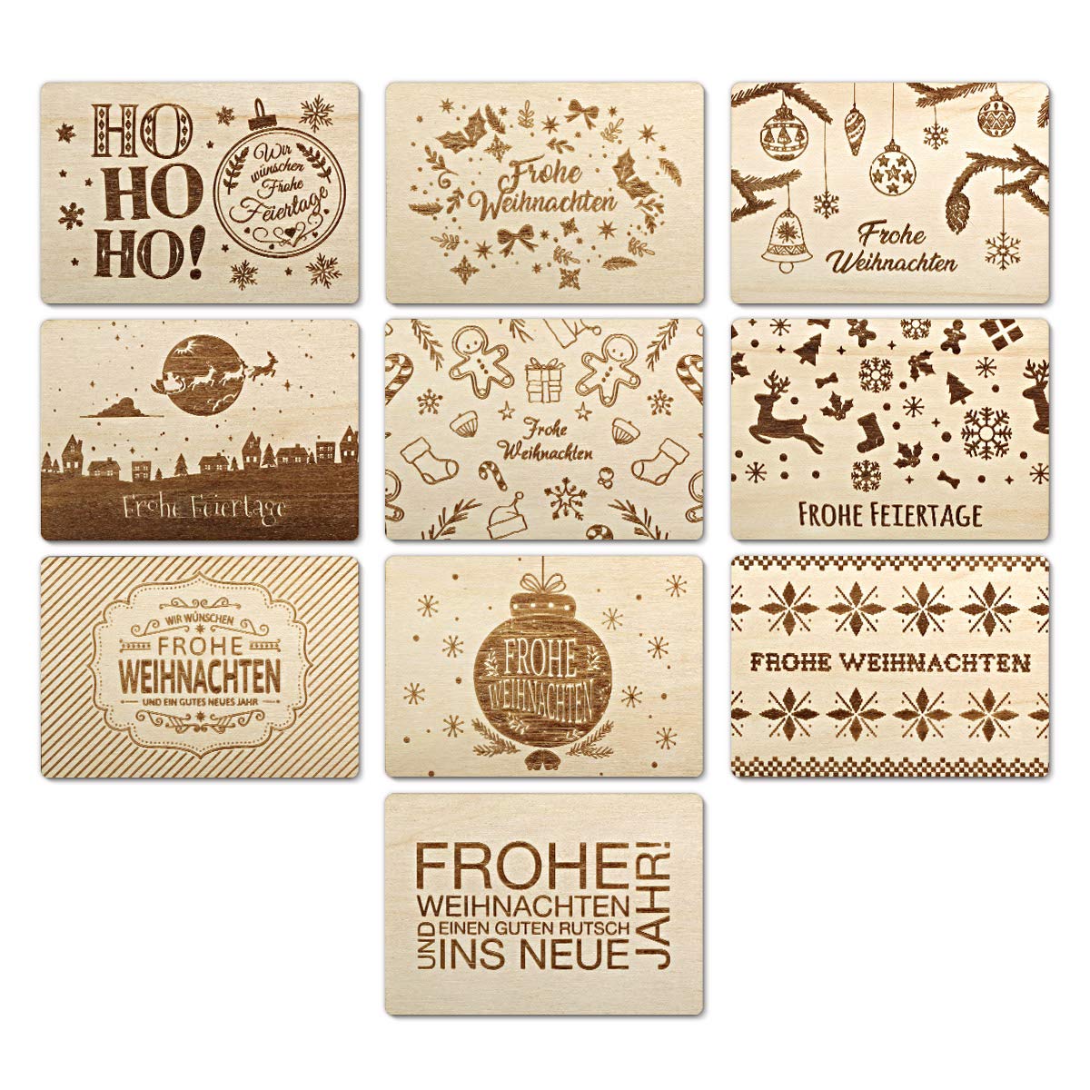 Weihnachtskarten 10 Stück Set Aus Holz