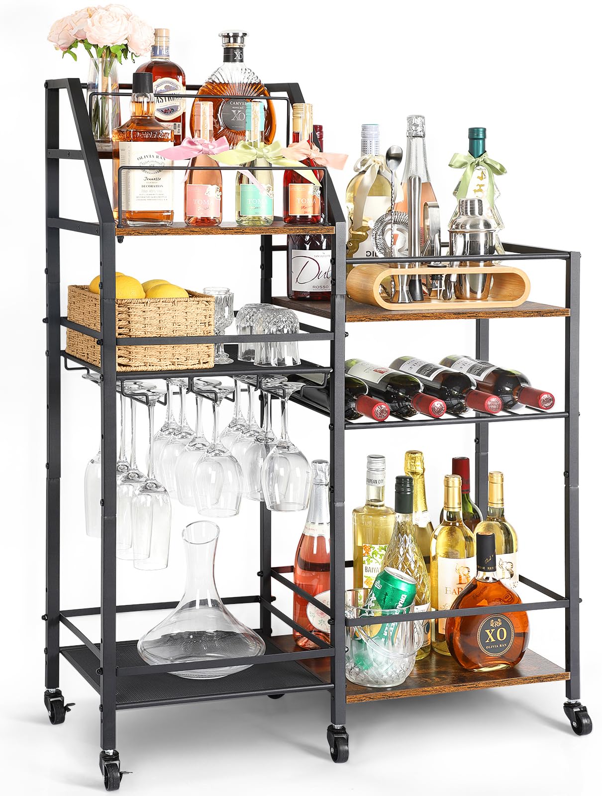 Weinregal Freistehend, Großer Flaschenregal Rollender Bar Wagen