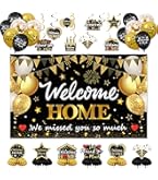 Willkommen Zuhause Deko Schwarz Gold - Welcome Home Dekoration Mit Bunt Luftballons Wimpeln Und We Missed You Girlande, Herzlich Willkommen Dekor Für Familienfeier Babyparty