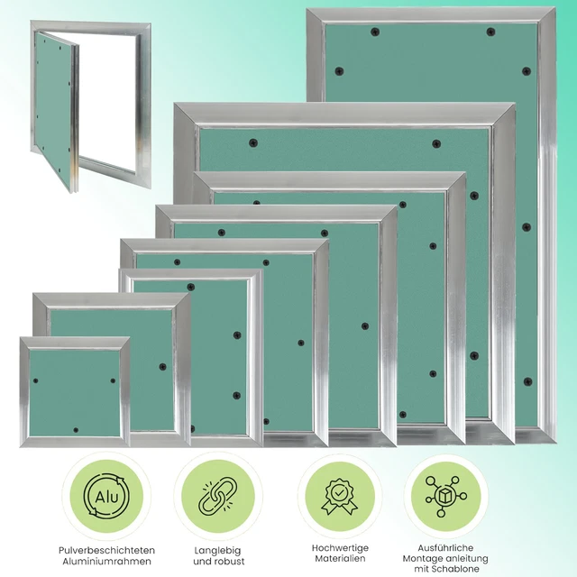 Vielseitig Einsetzbar: Diese Revisionsklappe mit einer Einlage aus imprägniertem Gipskarton eignet sich perfekt für Wartungs- und Reinigungsarbeiten sowie f Revisionsklappe 50x50 Revisionsklappe Werkzeug MW Multi Werkzeug Revisionsklappe 150 X 200 Mm Mit 12,5mm GK-Einlage Imprägniert Für Feuchtraum Geeignet Aluminium-Rahmen Weiß Pulverbeschichtet 15 X 20 Cm Trockenbau Revisionsklappe Revisionsklappe 10x10 Wartungstüren ermöglichen einen einfachen Zugang zu den eingebauten Wartungsöffnungen, in denen sich Elemente befinden, die eine häufige oder zyklische Überprüfung ermöglichen, wie etwa Wasserventile, Wasserzähler oder Gaszähler., Größe: 150 x 300 mm Material: Aluminiumrahmen mit Gipskartoneinlage 12,5 mm imprägniert (grün) Hochwertige Gummi-Lippendichtung verhindert Verschmutzungen durch Luftströmungen im Fugenbereich.Alle Produkte. ECD Germany Revsonsklappe Revsonstür GK-Enlage Revson... mit Druckverschluss der höchsten Qualität ECD Germany Revisionsklappe Revisionsklappe Revisionstür GK-Einlage