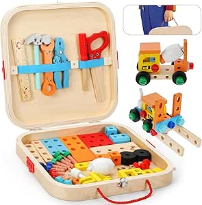 FAMKEEP Werkzeugkoffer Kinder,Farbige Holzwerkzeuge