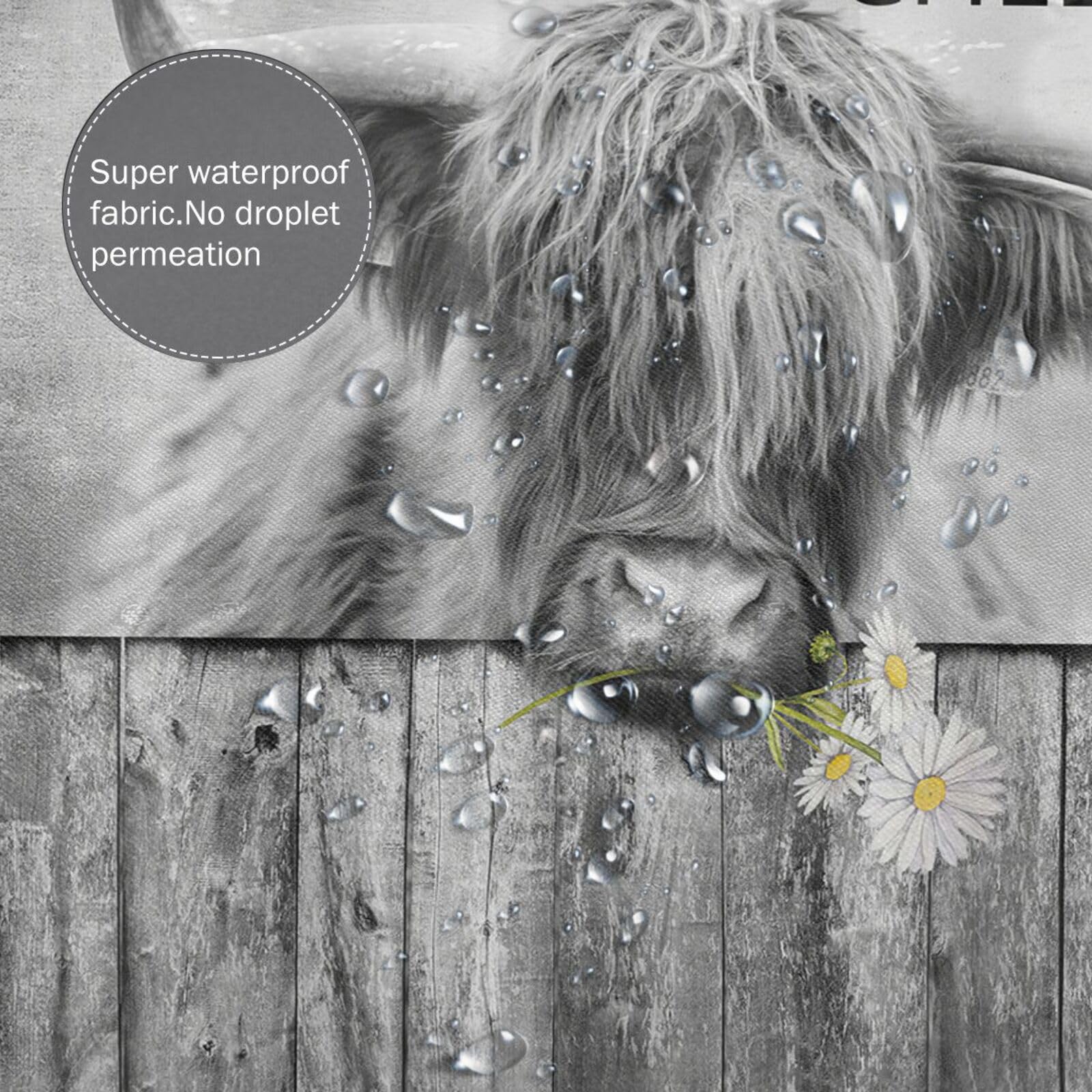 WONGKAI Longhorns Kuh Duschvorhang Texas Steer Western Longhorn Bauernhof Tier Niedlicher Stier Grasland Rustikales Bauernhaus Land Braun Stoff Badezimmer Dekor Set Mit Haken (177,8 Cm WX70 H