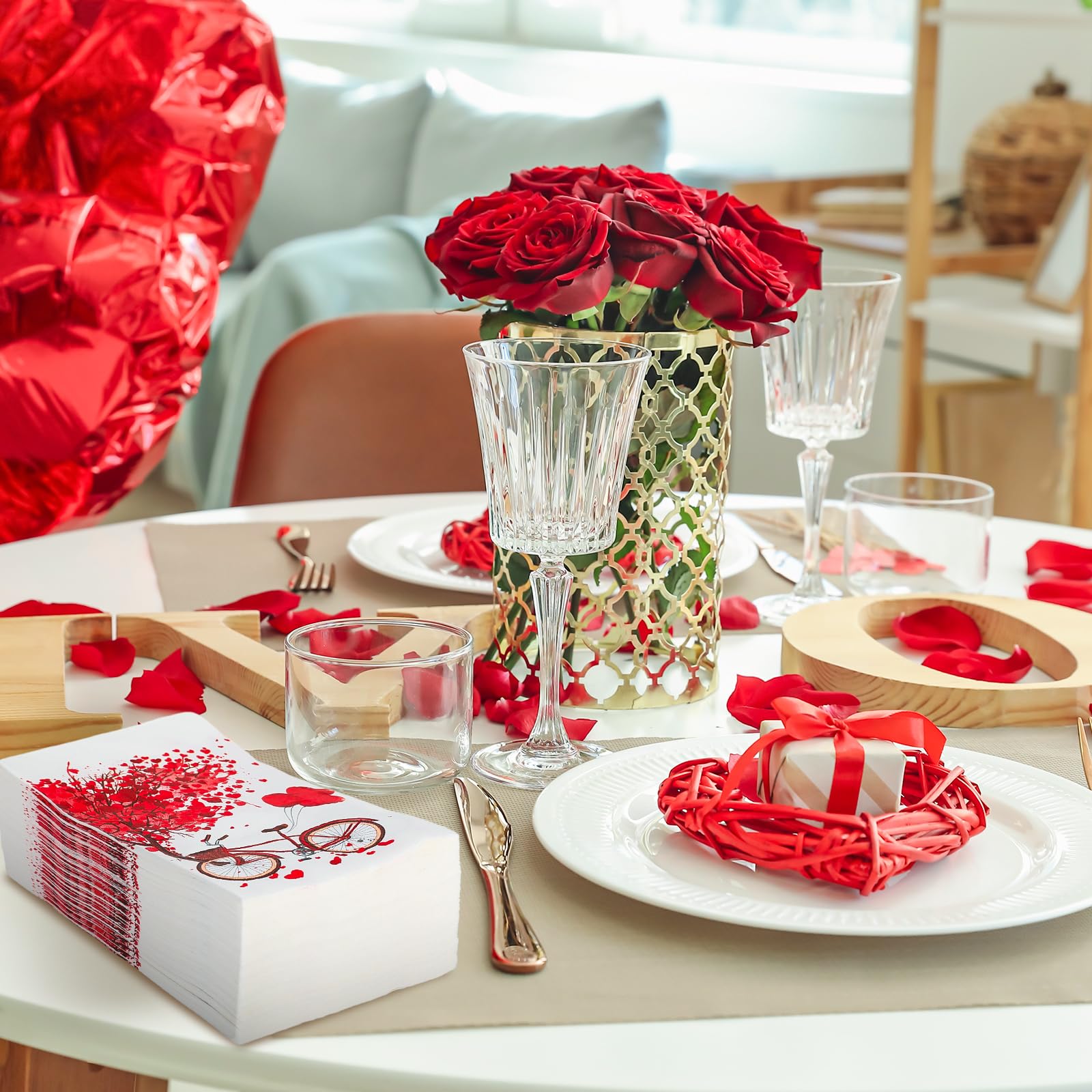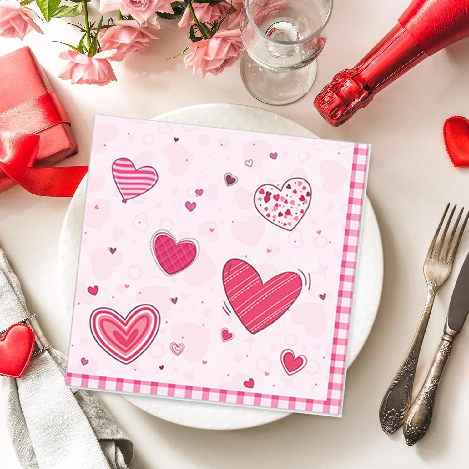 Whaline 100 Stück Valentinsgäste-Servietten, Rot-rosa Liebesherz