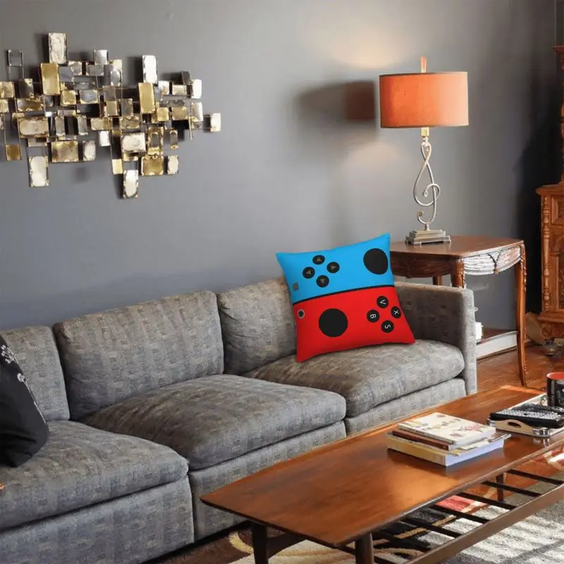 Whaline Video Game Throw Pillow 45.7 X 45.7 Cm Gamer Controller Cushion Cover White Black Gaming Throw Cushion Cover 4 Pack Gamepad Logo Cushion Cover Design For Home Office Car Sofa Couch