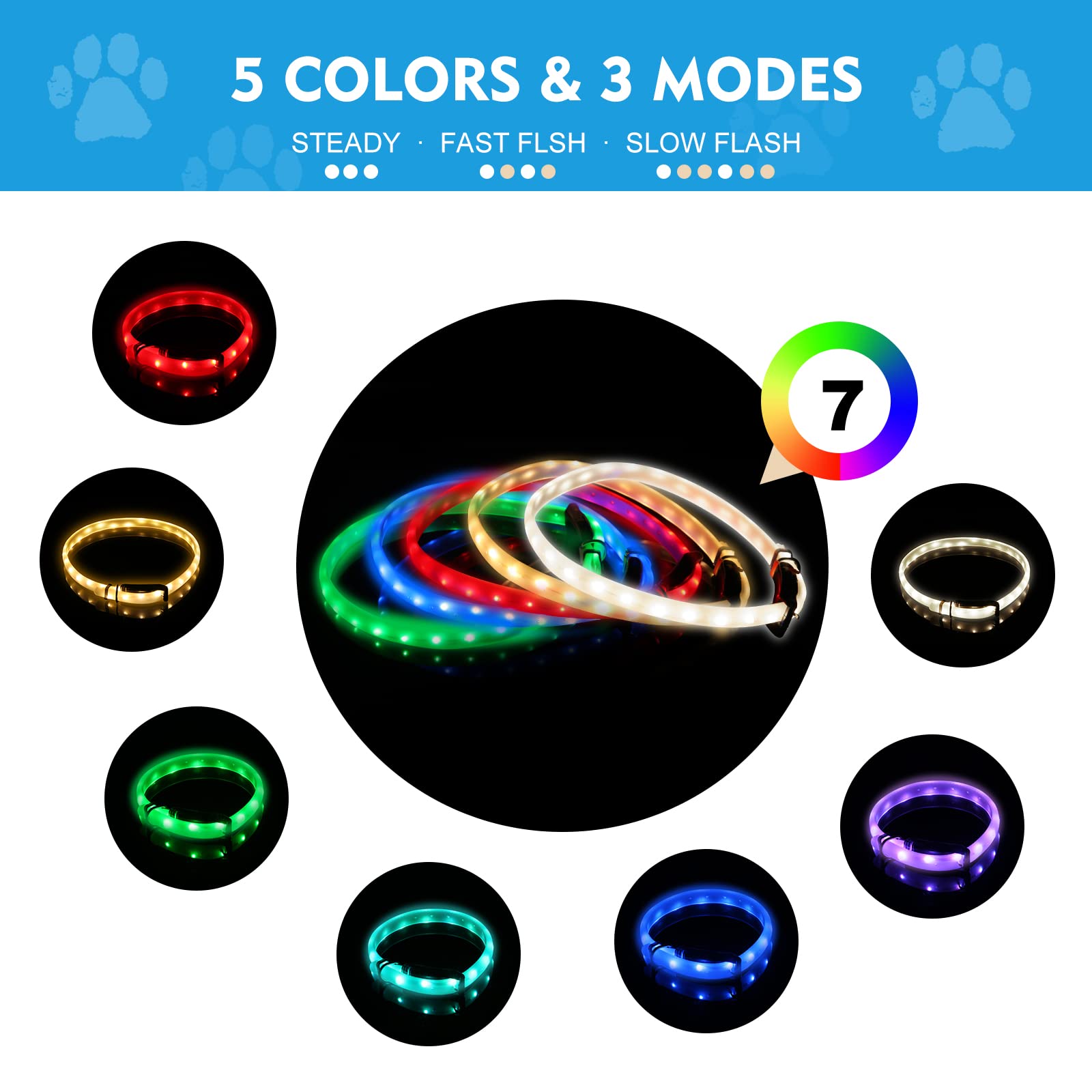 LED Hundehalsband Wiederaufladbar | 7 Farben | Wasserdicht