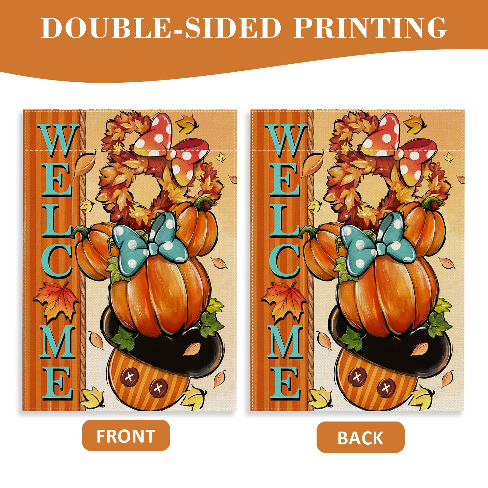 Covido Willkommens-Kürbisse, Dekorative Gartenflagge, Herbst, Weiß