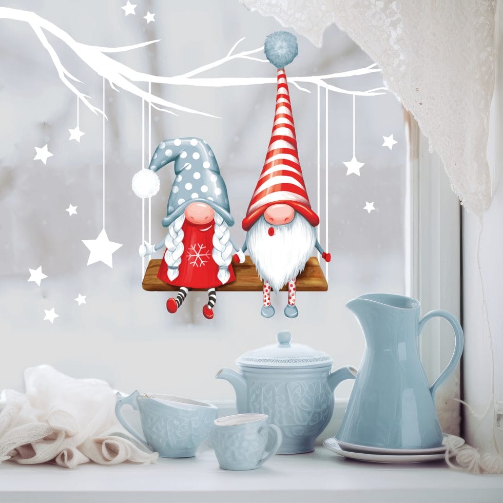 Fensterbild Weihnachten Winter Einzelne Zwerge Wichtel Und Schneeflocken Fensteraufkleber