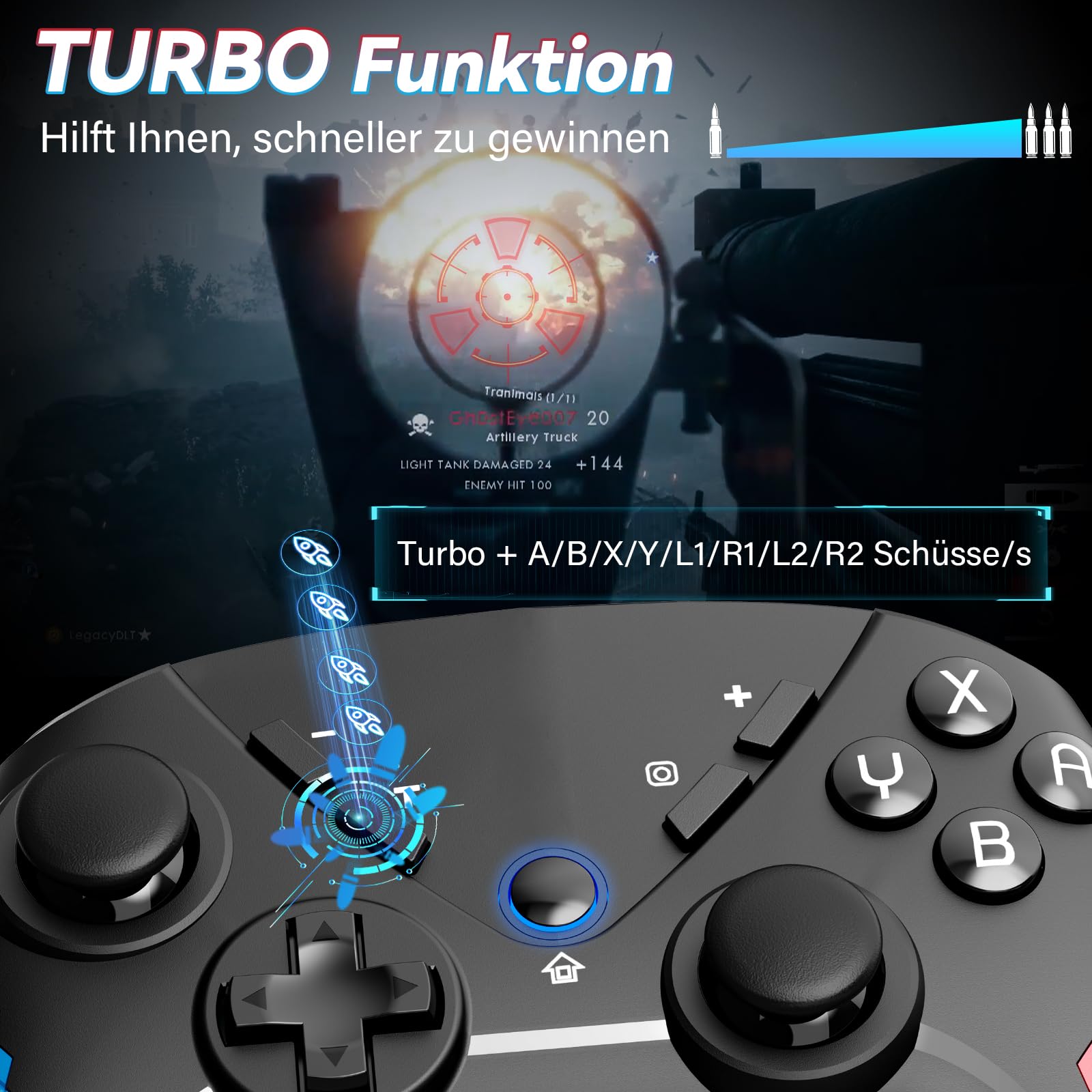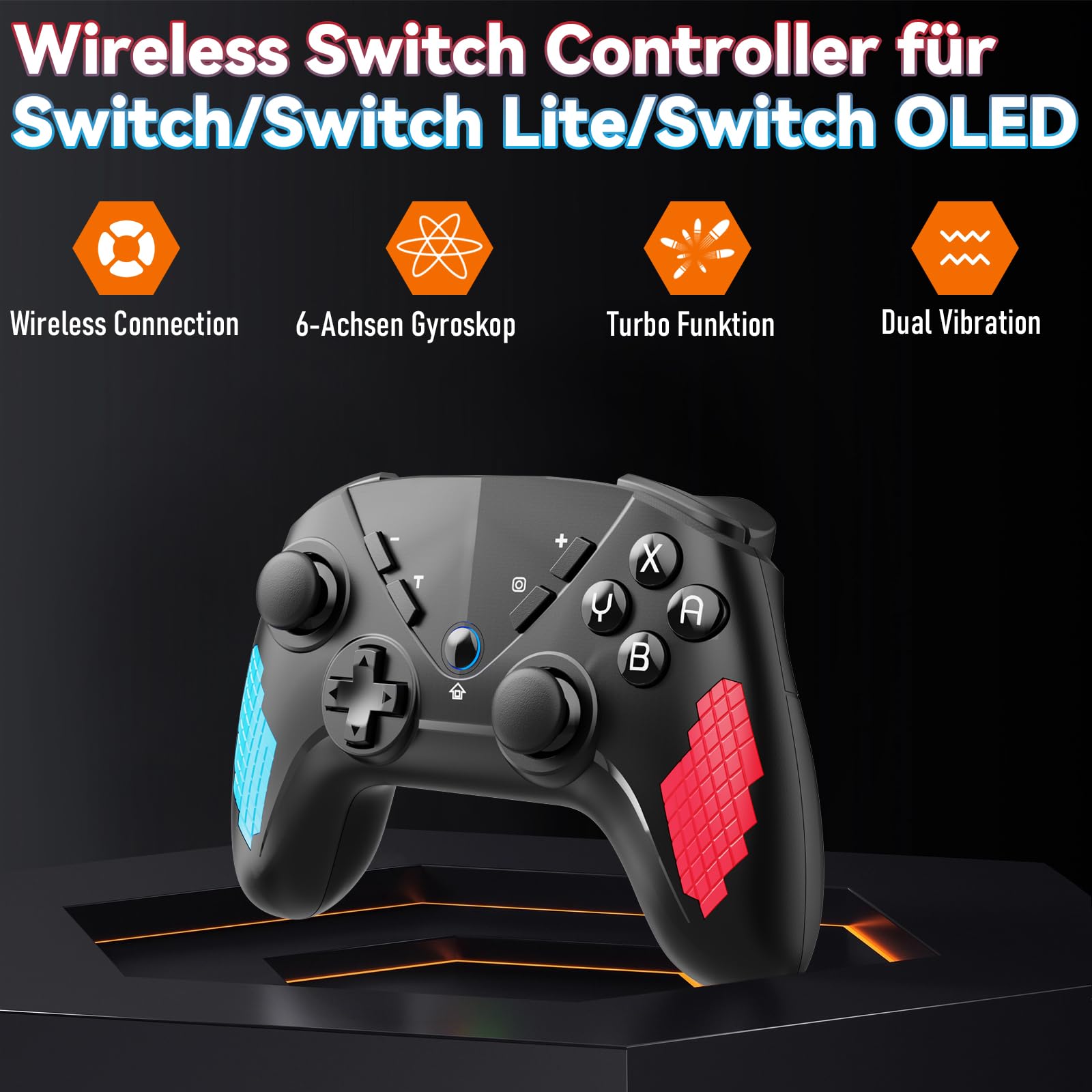 LATEC Controller Für Switch, Wireless Switch Controller Kompatibel Mit Switch Lite/Oled, Hall Joystick/Programmierbare Taste/6-Achsen-Gyroskop/Einstellbare Vibration/Turbo-Funktion/Bildschirmaufnahme