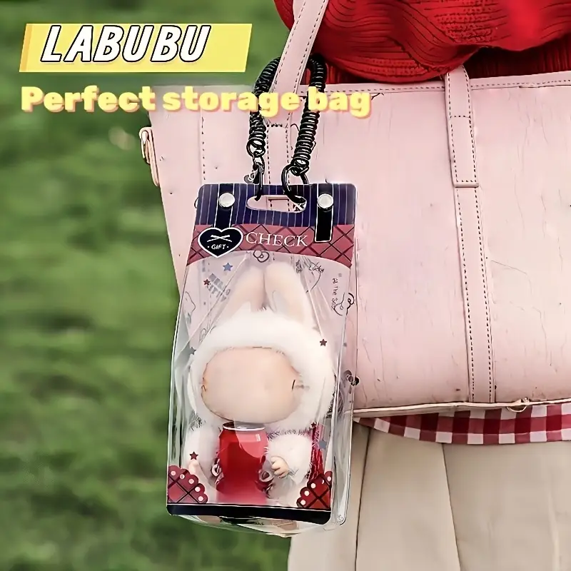 Toyvian Clear Figure Display Bag With Keychain And Pompoms, 2 Sets Portable Collectibles Display Case For Mini Figures Dolls Dustproof Waterproof Small Doll Organizer
