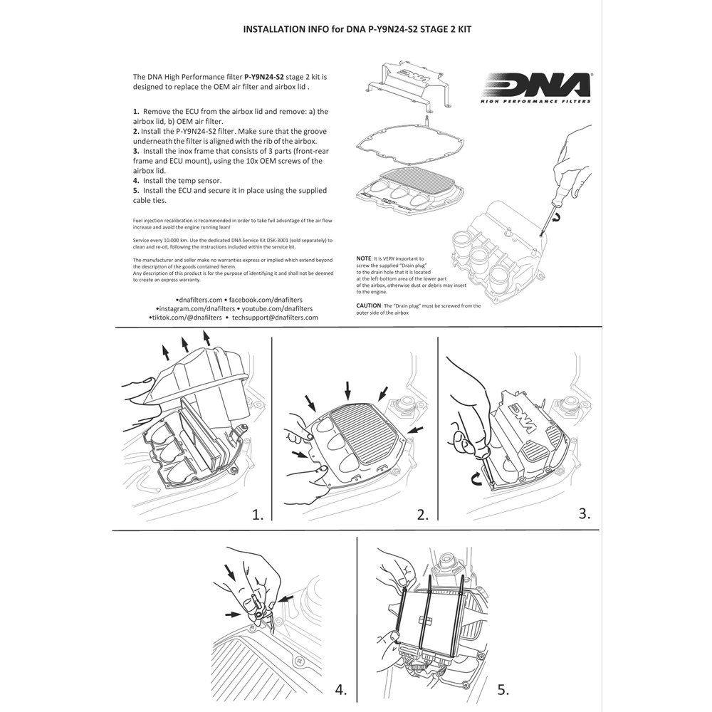 Dieses einzigartige Baumwollmedium ist eigentlich ein haariger Hybrid mit extrem hohen Luftdurchsätzen und ausgezeichneter Filtereffizienz, die 98% übersteigt., 2., Das DNA-Drahtgeflecht Das DNA-Drahtgeflecht ist ein ganz besonderes Material, das von den Forschungs- und Entwicklungsingenieuren der DNA entwickelt wurde. Der Durchfluss dieses neuen DNA-Filters ist um +38,70 % höher als der des Serienfilters! Mit DNA FCd Technologie ist mindestens 20% und bis zu 80% mehr Filtrationsfläche üblich! Yamaha Tracer 9 (2025) DNA Luftfilter Stage 2 und Abdeckung Gute Qualit t OEM Papierfilter sind von 97% bis 99% und die Schaumstofffilter sind von 92% bis 97%. Tatsächlich können wir bei der Gestaltung eines neuen Filters aus einer unbegrenzten Kombination von DNA-Filtermedien wählen. DNA Stage 2 High Performance Air Filter Compatible With Yamaha Tracer 9 GT (21-24) PN: P-Y9N21-S2 The Anatomy of a DNA High Performance Filter 1., Die DNA Cotton Diese ganz besondere Baumwolle wurde von den Forschungs- und Entwicklungsingenieuren von DNA für Hochleistungs-Filterzwecke entwickelt. Feuchtigkeit greift das Öl nicht an, auch wenn der Filter in Wasser getaucht wird., 5., Die DNA PU (Elastomer-Polyurethan) Das DNA PU ist ein thixotropes Material, das wir verwenden, um den hochwertigen Rahmen des Filters mit einzigartigen Materialspezifikationen zu entwickeln. 7 EU: Die DNA FCd Designtechnologie Das DNA FCd Design – Welcome to the Future! Wir produzieren eine sehr große Auswahl an Medien, angefangen von 8 mm bis 50 mm Höhe, mit einer unendlichen Größe von Pitch. Luftstrom der OEM-Luftbox mit serienmäßigem Filter: 3620 l/min (pro Filter) @3,7 mBar, korrigiert bei 25 Grad Celsius. Mit der Verwendung des P-Y9N24-S2 ist weder der OEM-Luftfilter noch der DNA P-Y9N24-01 erforderlich. Luftstrom des DNA Stage 2 Luftfilters: 5020 l/min (pro Filter) @3,7 mBar, korrigiert bei 25 Grad Celsius. 6 EU: Die DNA EVA geschlossenzelligen Dichtungen Hochwertige, präzise geschnittene EVA-Dichtungen, werkseitig mit Industrieklebstoff installiert, sorgen für eine perfekte luftdichte Abdichtung und einfache Filterinstallation. Der DNA-Reiniger beeinträchtigt sie nicht beim Reinigen des Filters! Was ist Filtereffizienz? Filtereffizienz ist die Menge an Schmutz, die der Filter aufrechterhalten (stoppen) und den Motor effizient schützen kann. Lesen Sie zuerst die Reinigungsanweisungen, dann befolgen Sie diese sorgfältig. Eine Neuprogrammierung der Kraftstoffeinspritzung wird empfohlen, um den Luftstromanstieg voll auszunutzen und ein mageres Laufverhalten des Motors zu vermeiden! Yamaha MT 09, XSR, Tracer 9 Series (24-25) - DNA Luftfilter Stage 2 P-KT3N24-S2 Dieser Filter des DNA Stage 2 Kits eliminiert den OEM-Ansaugschnorchel von Yamaha-Modellen und bietet höhere Leistung sowie einen verbesserten Ansaugklang. Durchfluss des DNA Stage 2 Luftfilters: 5020 Liter/Minute (pro Filter) (l/min) @3,7 mBar / korrigiert bei 25 Grad Celsius OEM-Luftfilterkasten mit Serienfilter: 3620 Liter/Minute (pro Filter) (l/min) @3,7 mBar / korrigiert bei 25 Grad Celsius Unsere Dyno-Zelle ist mit einem Luftkühlsystem mit variablem Durchfluss ausgestattet, das entwickelt wurde, um reale Bedingungen präzise zu simulieren. Sobald das DNA-Öl zu den Baumwollmedien hinzugefügt wird, wird die Baumwolle statisch geladen und in ein unschlagbares Filtermaterial verwandelt! Um dieses fantastische Ergebnis zu erzielen, haben wir eine einzigartige Luftfilterölformel entwickelt. Zusätzlich wird es durch eine feine Epoxidbeschichtung vor Oxidation geschützt. Dieser DNA® Luftfilter ist als Hochleistungs-Luftfilter nur für den Renngebrauch vorgesehen. OEM Luftfilter Luftdurchfluss : 3620 l/min. Waehrend des haertesten Rallye der Welt, DAKAR 2011 in Argentinien -Chile, einer der Werkmotorraeder Aprilia 450 Rally, mit DNA Filter rann Durch vollständige Nutzung der Luftbox-Fläche beseitigen wir stromraubende tote Stellen. Dieses Stage 2 Kit wurde entwickelt, um die serienmäßige Kunststoffabdeckung des Luftfilterkastens und den OEM-Luftfilter zu ersetzen. Einmal im Jahr oder alle 15., 000 bis 30., 000 km wird empfohlen, um Ihren DNA-Filter in Top-Zustand zu halten. Bietet der DNA-Filter den gleichen Schutz wie der OEM-Filter? Ja und noch besser, die DNA-Filter haben eine Filtereffizienz von mindestens 98% (ISO 5011 Test). Wie oft muss ich meinen DNA-Filter reinigen? Die Wartungsintervalle hängen von der Umgebung ab, in der das Fahrzeug verwendet wird. Die Spezifikationen unseres DNA-Luftfilteröls sind so beeindruckend wie unsere Filter. Kann ich meinen OEM-Filter mit einer DNA wechseln, ohne den Kraftstoff zu ändern? Für den Fall, dass der Luftstrom des DNA-Filters extrem hoch ist, legen wir dem Filter spezielle Anweisungen bei. Hecktieferlegung 25 mm kompatibel mit Yamaha Tracer 700 mit ABE Es ermöglicht den plissierten Filtermedien, genau der Luftbox-Kontur zu folgen, unabhängig von der Komplexität der Form. Häufig gestellte Fragen zu DNA-Luftfiltern Was ist DNA FCd Design? Das DNA FCd Design ist eine Innovation von DNA. Mit der kompletten Stellfläche der Luftbox beseitigen wir tote Stellen, die Strom rauben und gleichzeitig den Luftstrom ernsthaft erhöhen.