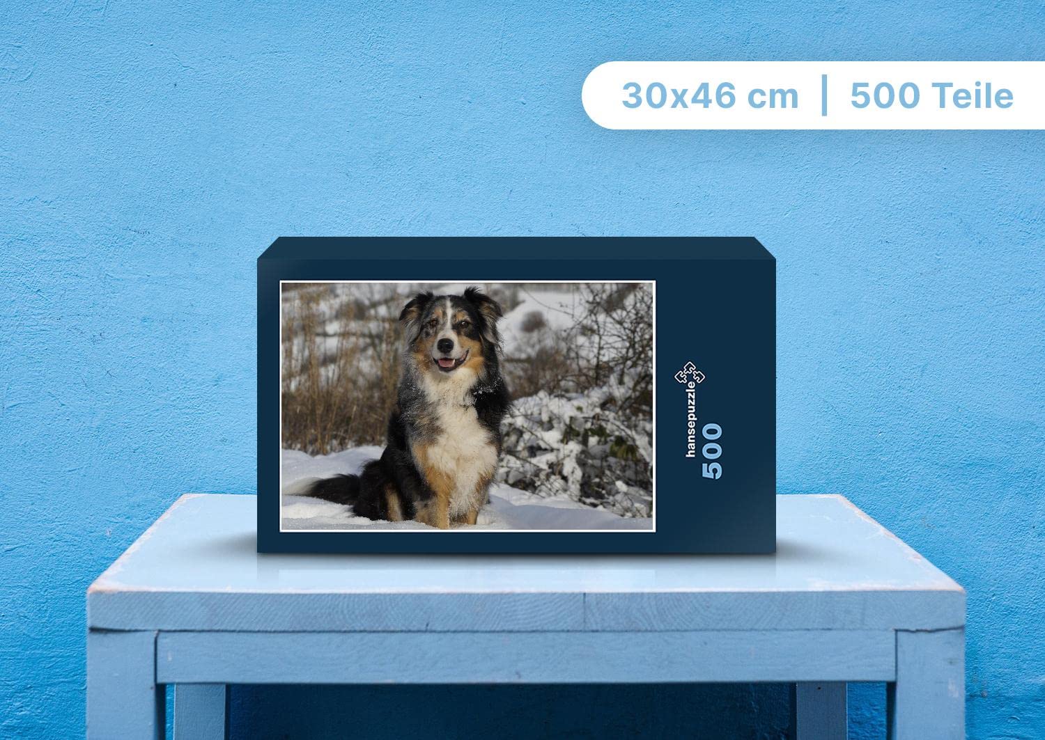 HANSEPUZZLE 29850 Australian Shepherd Puzzle 500 Pieces Animal World Puzzle With High-Quality Puzzle Storage: Cardboard Box And Resealable Bag Puzzle Dimensions: 46 X 30 Cm