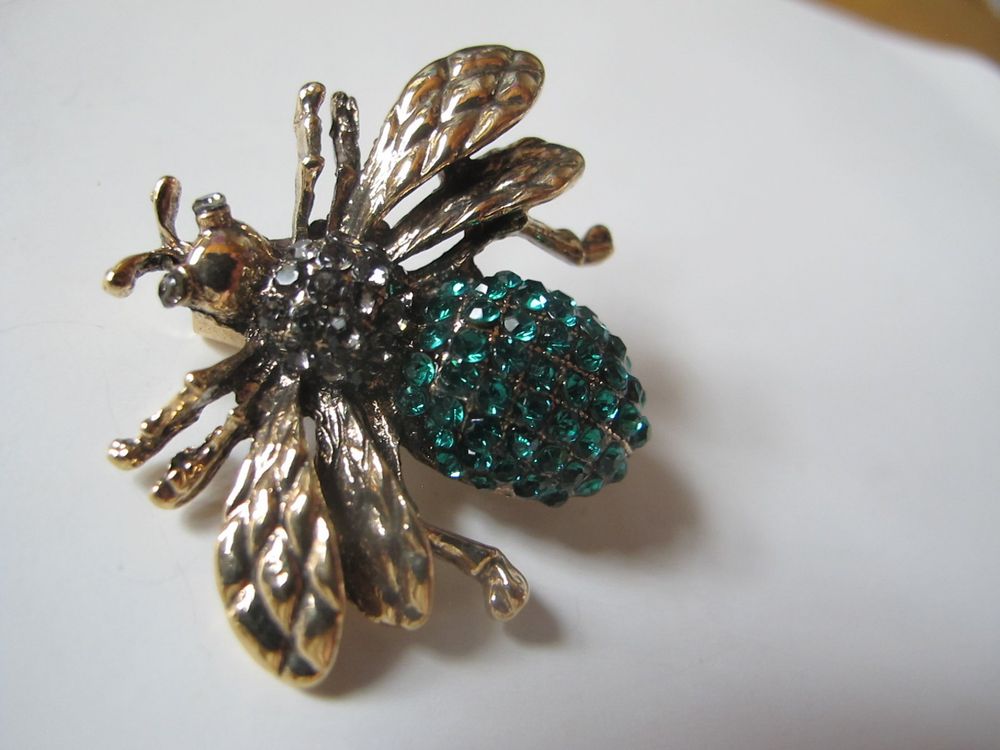 Wundeschöne Brosche Biene Mit Grünen Strasssteinen (Neu (gemäss