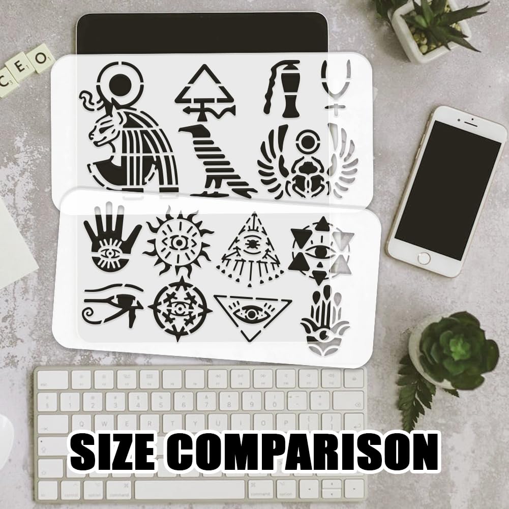FINGERINSPIRE Ägyptische Pharao-Schablonen, 21,6 X 29,2 Cm, Wiederverwendbare Pharao-Zeichenvorlagen, A4-Größe, PET-Kunststoff, ägyptische Hieroglyphen, Schablone Für Wand, Holz, Leinwand, DIY, Alte
