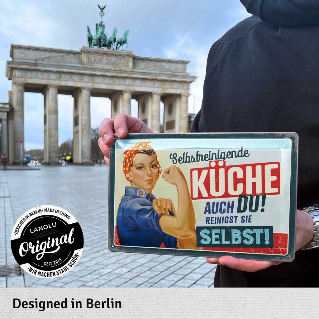 Je nach Größe reichen Klebepunkte oder kleine Nägel aus. Wo wird das Blechschild produziert? Unsere Blechschilder werden nachhaltig in Deutschland auf eine ähnliche Art und Weise wie ihre historischen Vorgänger produziert. WE LOVE RETRO: Blechschild im nostalgischen Design aus extra starkem Stahlblech als tolle Dekoration für die Küche, im Wohnzimmer oder in der eigenen Bar Buddel-Bini Versand Blechschild Nostalgieschild Sarotti Mohr MADE IN GERMANY: hochqualitative Verarbeitung, in Deutschland gefertigt Schau einfach in unseren Amazon-Brandstore. Wie kann ich das Blechschild aufhängen? Jedes Blechschild hat bereits vorgebohrte Löcher und kann einfach aufgehängt werden. Durch einen hohen Anteil an Handarbeit ist ein Höchstmaß an Qualität sichergestellt. IDEALES GESCHENK: für die Küche, besonders hochwertiger und farbenfroher Druck in 1A Qualität Achte beim Kauf auf das Hologramm auf der Rückseite – für 100 % Originalität. COOLER HINGUCKER UND TOLLES GESCHENK: schöne Alternative zu Postern aus Papier, für tollen Retro Flair zu Hause, Designed in Berlin Teenager Mädchen Geschenke Nostalgic-Art Retro Blechschild, 20 X 30 C, Küchen-Regeln Schild Papas Werkstatt