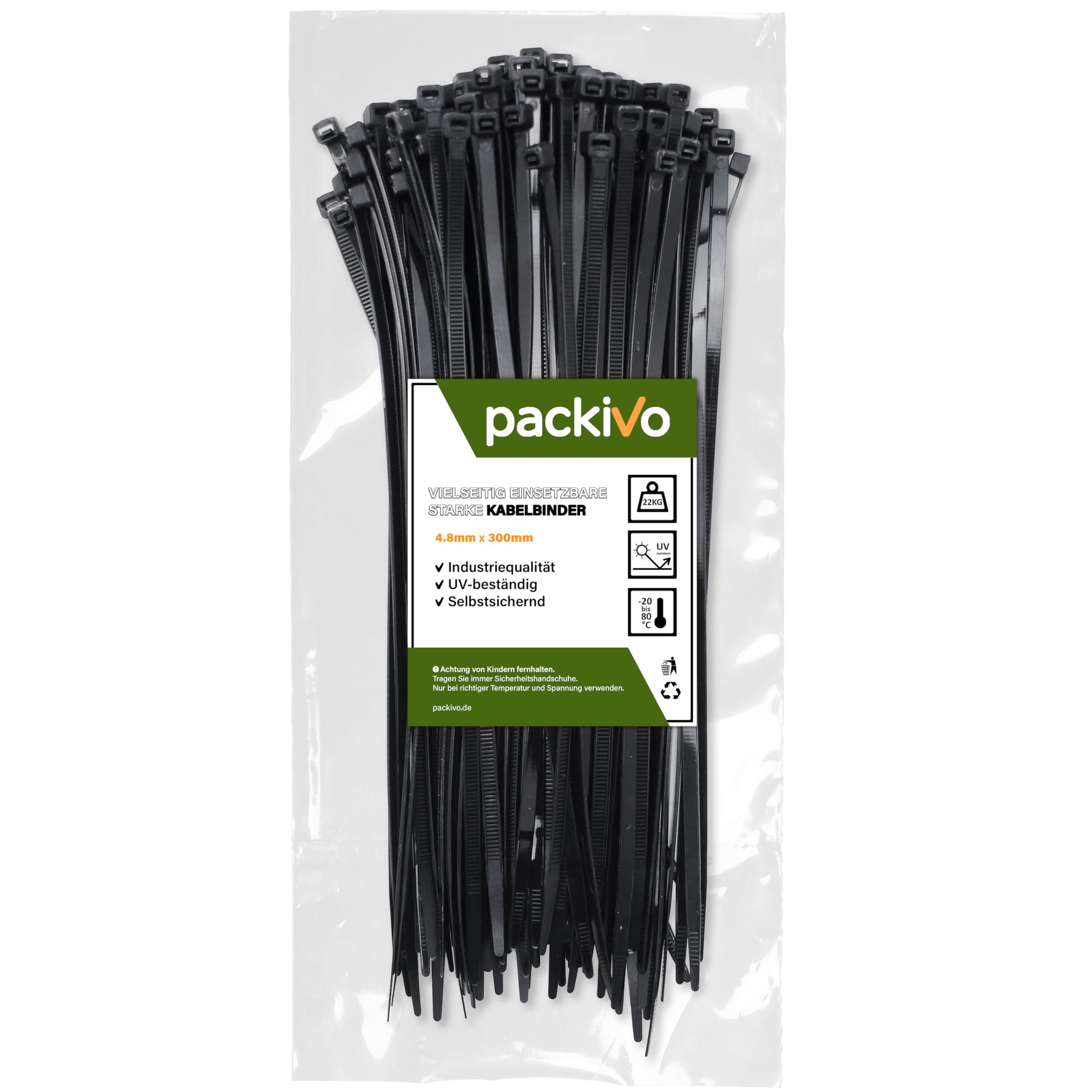 ORTAVA Kabelbinder Schwarz 300 Mm X 4,8 Mm, 100 Stück Kabelbinder UV Beständig 22 Kg Zugfestigkeit Für Industrie, Kabelmanagement, Gartenbau