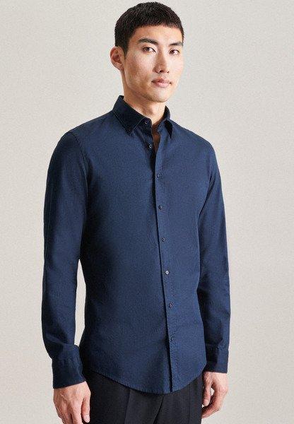 Seidensticker Herren X-Slim Langarm Karo Popeline Klassisches Hemd, Dunkelblau, 36