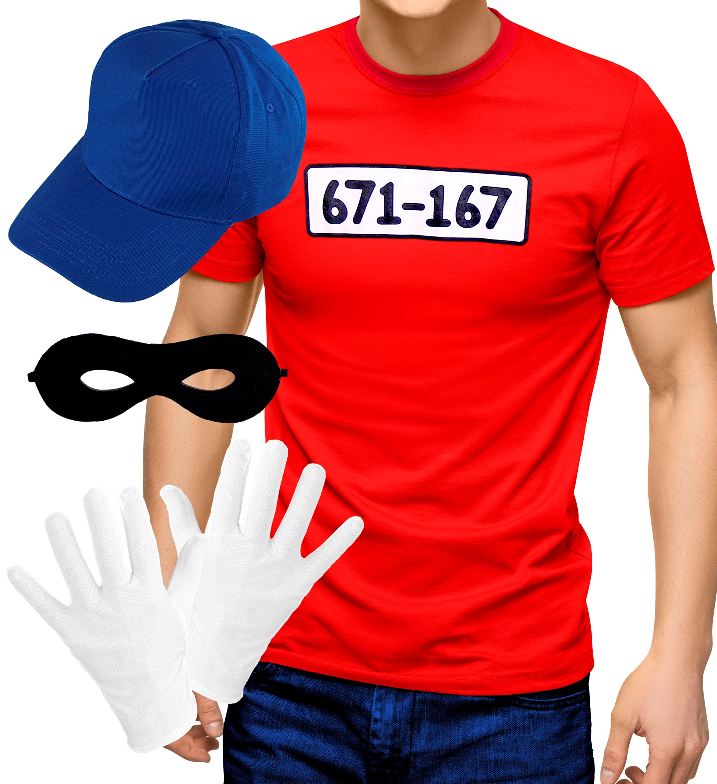 Bankräuber Outfit XL Shirt Handschuhe Maske Basecap Comic Panzerknacker