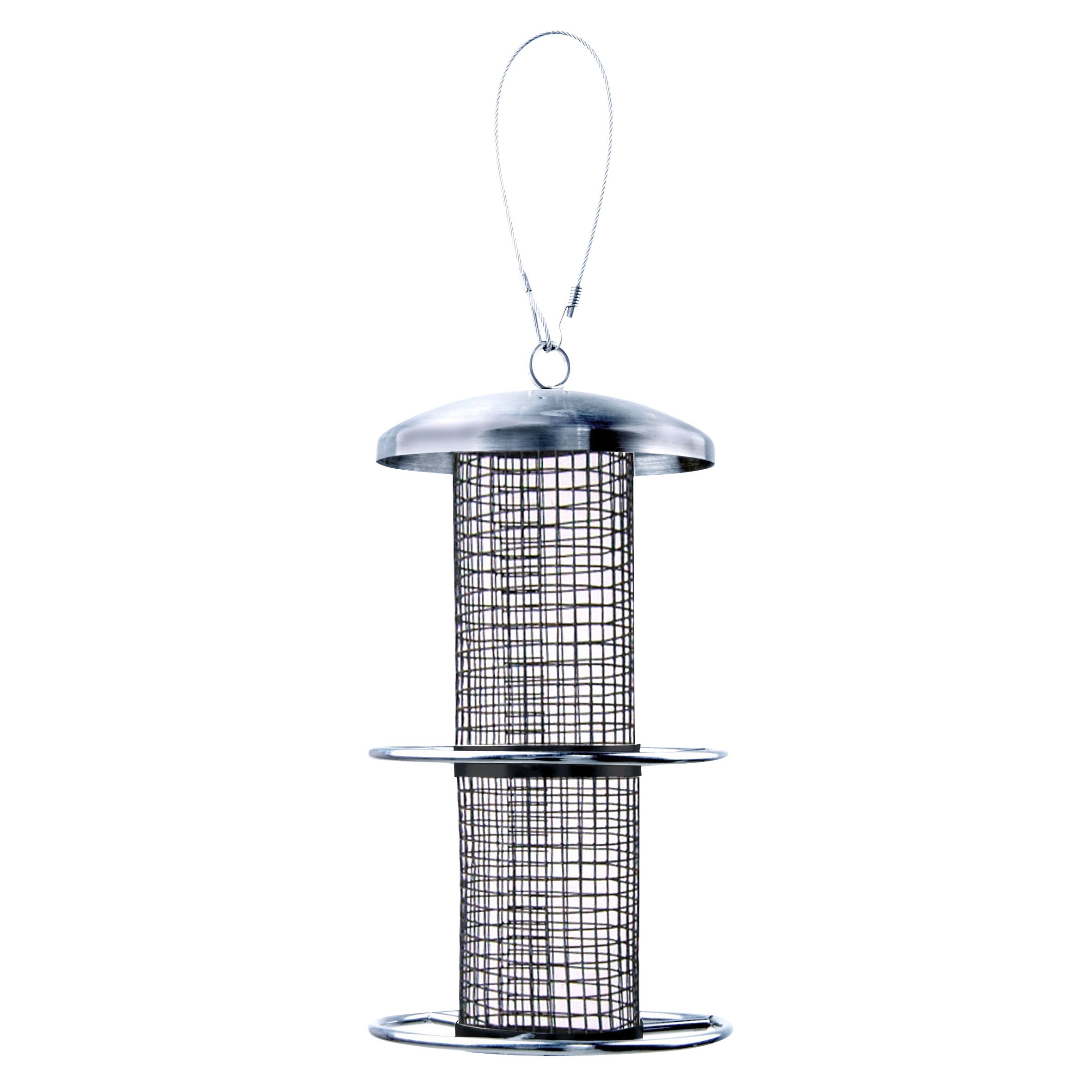 Xclou Vogelfutterstation In Silber, Runder Vogelfutterspender Aus Robustem Metall, Spiralkorb Zum Hängen, Futterstation Mit Gitter
