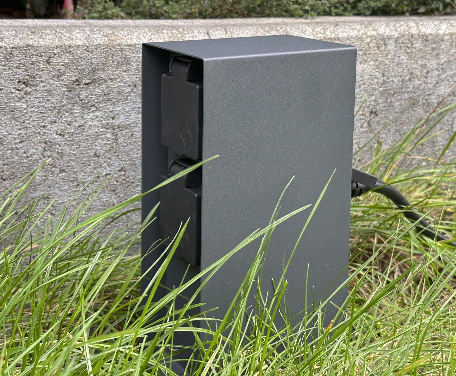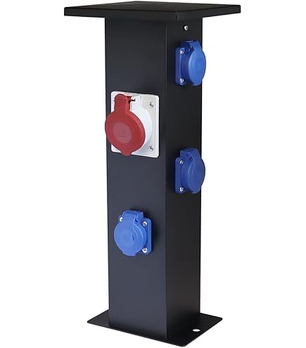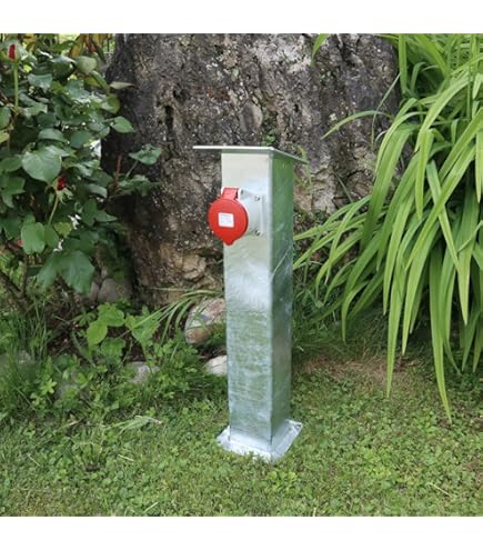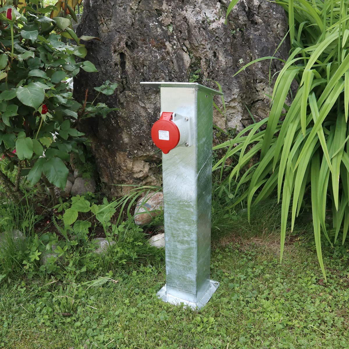 Xenterio Steckdosensäule Für Festinstallation, Stahl Feuerverzinkt, 1x CEE-Steckdose Mit Klappdeckel 32A