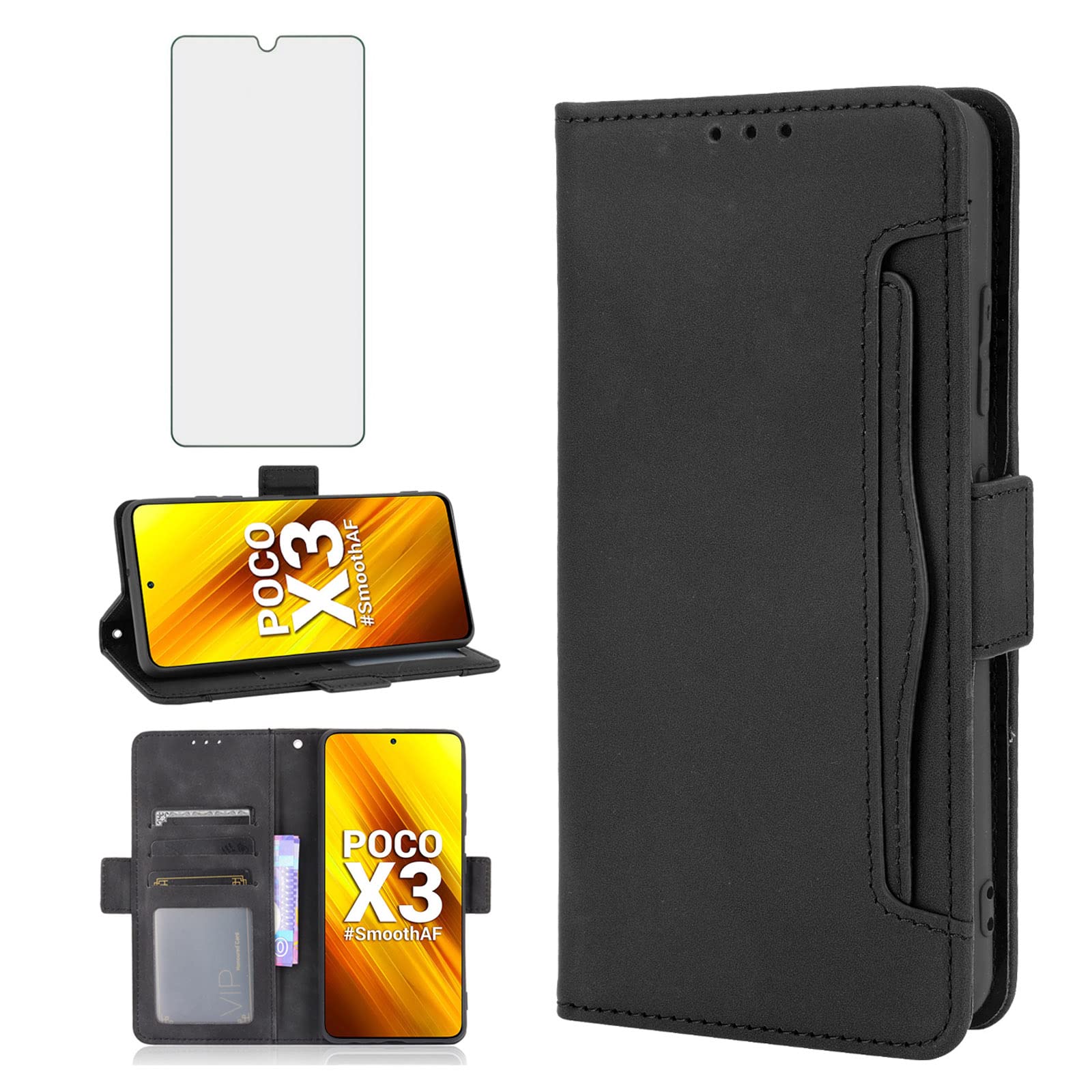 Handyhülle Für Xiaomi Poco X3 / Poco X3 Pro / Poco X3 NFC Hülle, Premium PU Leder Flipcase Schutzhülle Klapphülle Mit Kartenschlitz Und Faltbare Brieftasche Hülle Für Xiaomi Poco X3 NFC