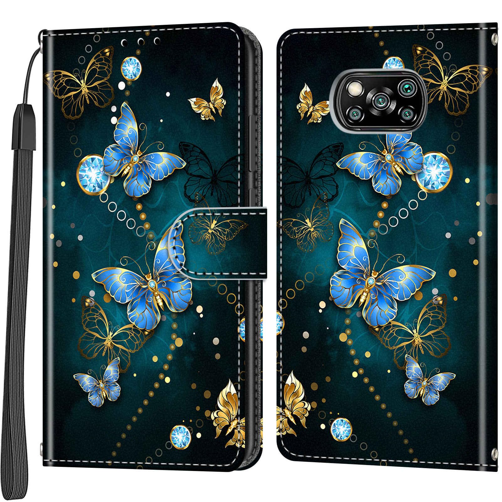 BOLELAW Hülle Für Xiaomi Poco X3 Pro/Xiaomi Poco X3 NFC Mit Flip Case Leder Schutzhülle Stylische Klapphülle, Blaue Rose