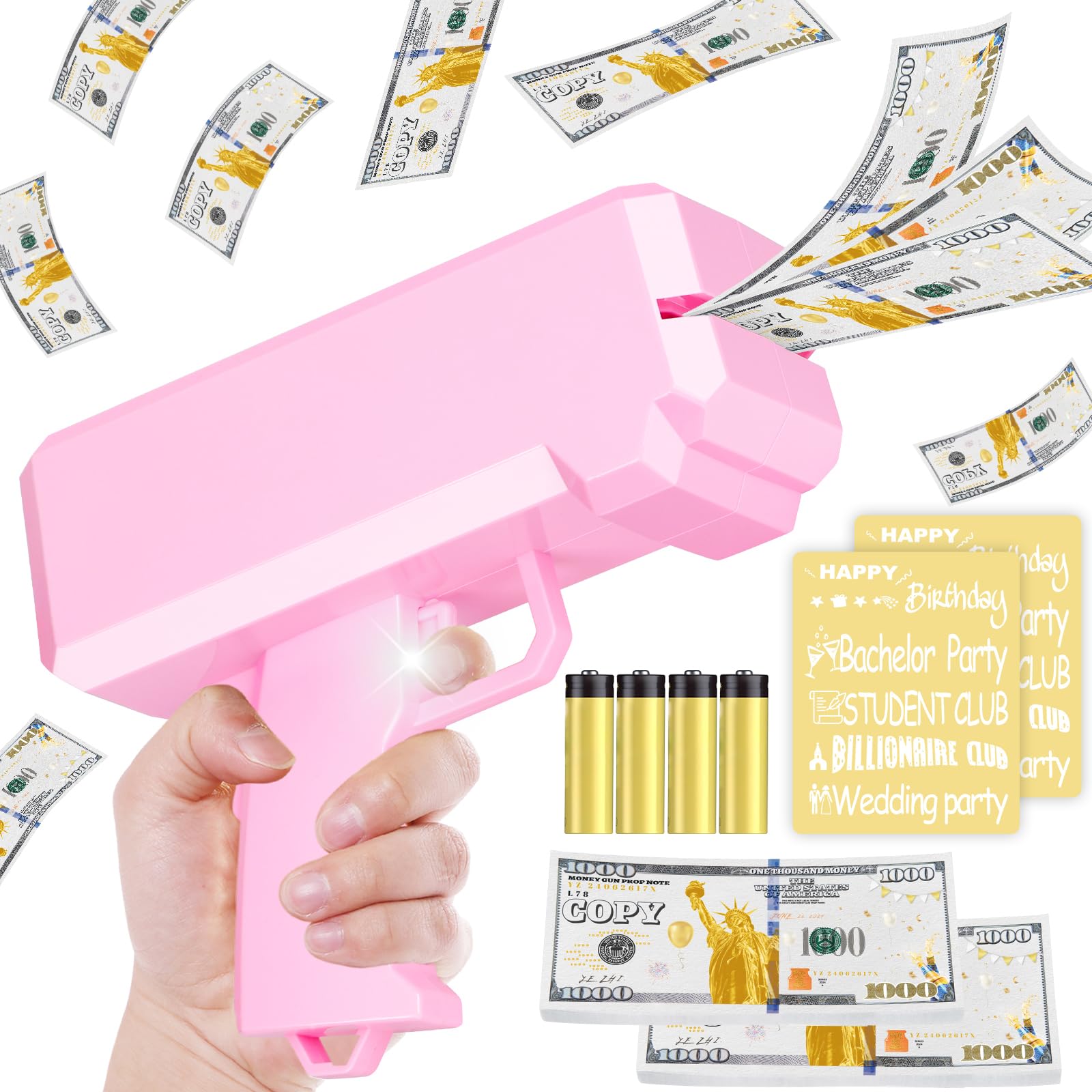 Kann auch Prospekte, Coupons und Visitenkarten platzieren. Geldschein Pistole Xzbling Geld Pistole Set Geldpistole Spielzeug It 100 Stück 100 Dollar Money Gun 【LASSEN SIE ES GELD REGNEN】Wenn die Geldpistole aktiviert wird, fliegen die Geldscheine und landen auf den Köpfen der Zuschauer oder Kunden, was ihnen unendliche Überraschung und Freude bereitet. Goods & Gadgets Super Money Gun Geldpstole für Partys - Rot onlne... 【GROSSE KAPAZITÄT】 Dieser Super Money Shooter hat eine große Kapazität, Sie können etwa 100 Blatt Papier in das Spielzeug legen. 【GEEIGNET FÜR PARTYS UND SPIELE】 Das Make It Rain-Spielzeug ist perfekt für Hochzeiten, Geburtstagsfeiern, Abschlussfeiern, Firmenfeiern, Familientreffen, Junggesellenabschiede und andere lustige Spiele. Egal, ob als Teil eines Kostüms oder als Gag auf einer Party – sie sorgt garantiert für Unterhaltung. Wer den passenden Anlass findet, kann mit diesem Gadget für einen echten Hingucker sorgen Blank Pink Money Gun Shooter Gefälschte Geld-Dollar-Rechnungen spielen Gun Movie Einer der vielen verfügbaren Artikel aus unserer Spielgeld & BankenAbteilung hier bei Fruugo!