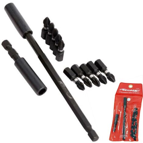 - Einfacher Einhand-Entriegelungsmechanismus mit automatischer Beladung und herunterziehbarem Kragen. SabreCut Revolution Schlagfester MagLok-Schrauben- und Bithalter – Fahren Sie schneller. Ein langlebiger 60mm-Schrauben- und Bithalter mit Doppelmagnet in professioneller Qualität, der das Befestigungselement während der Schraubanwendungen an Ort und Stelle hält 31 x SabreCut SCRPZ33231B 32mm PZ3 und 60mm Impact Bithalter Schlagschrauber-Bithalter und Schlagschrauber-Bits in professioneller Qualität , SCRK4 6-TEILIGER SCRK4 60MM professioneller magnetischer Schlag-Bithalter mit 5 x 2 - EUR 26,12.ZU VERKAUFEN! Robuste, wärmebehandelte Bits für verbesserte Haltbarkeit und Torsionszone für weniger Brüche Schlagschrauber-Bithalter 136063746105 Kann sowohl für lange als auch kurze Befestigungselemente oder Arbeiten in beengten Zugangssituationen verwendet werden. 6 teiliges Revolution Set inklusive MagLok 60 mm Schlagbithalter und einer Auswahl an 5 x 25 mm Schlagbits Der Impact Bithalter ist für 25 mm Impact Bits ausgelegt (2 x PZ2, 2 x PH2 und 1 x PZ3 im Lieferumfang enthalten - Der verchromte Schaft ist korrosionsbeständig. Speziell für die Verwendung mit Schlagschraubern entwickelt. - Professionelle Qualität kann in Schlagschraubern und herkömmlichen Bohrschraubern verwendet werden. 6-teiliges SabreCut Revolution-Set inklusive MagLok 60-mm-Schlagbithalter und einer Auswahl an 5 x 25-mm-Schlagbits Robuste, wärmebehandelte Bits für verbesserte Haltbarkeit und Torsionszone für weniger Brüche - Kerbe, Kraftnut und Schäfte ohne Nut, Sechskantschäfte nach ANSI-, JIS- und DIN-Standard. Bosch Professional YATO Professioneller Magnetischer Bithalter Bit Aufnahme Der Impact-Bithalter ist für 25-mm-Impact-Bits ausgelegt (2 x PZ2, 2 x PH2 und 1 x PZ3 im Lieferumfang enthalten). - Entwickelt für alle 25mm-Bits. - Der federbelastete Schiebemechanismus greift sicher in die Befestigungselemente ein.