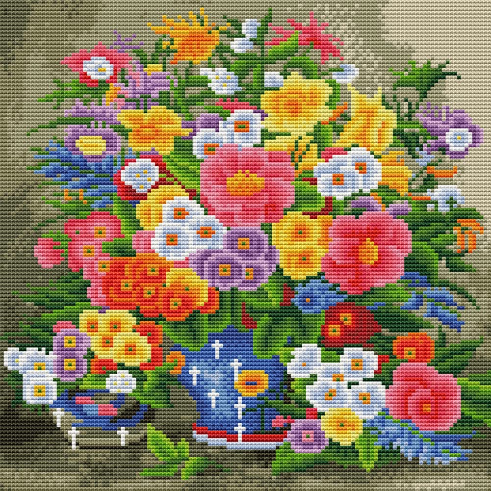 YEESAM ART Kreuzstich-Set, Gestempelt Für Erwachsene, Anfänger Und Kinder, Lila Blumen, 11 Ft, 37 × 37 Cm, Stickerei-Set Mit Einfachen, Lustigen Vorgedruckten Mustern, Nadelspitze, Weihnachten (lila