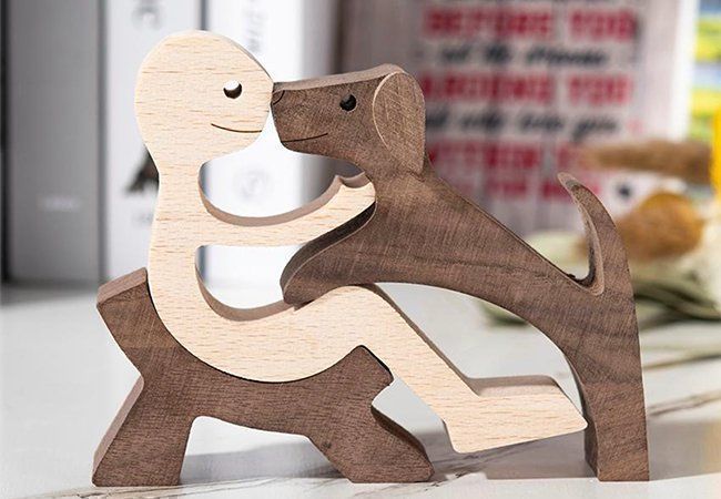 YUZHEDM Welpen Holzschnitz Ornamente Holzfiguren Skulptur Ornamente Set Familien Welpe Holzschnitzerei Ornamente Dog And Man Statue Holzschnitzerei Kreative Hund Geschenke Hund Skulptur Aus Holz