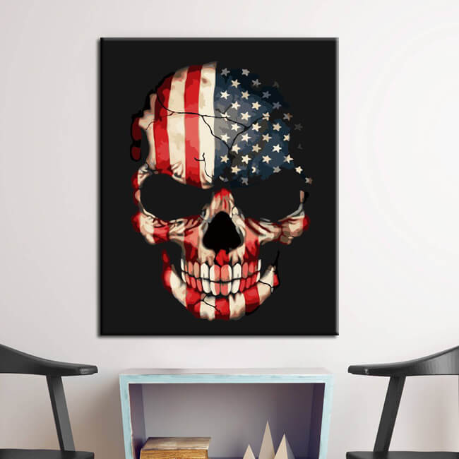 Yoonqun Farbiger Totenkopf Malen Nach Zahlen Set,50x65cm Malen Nach Zahlen Erwachsene DIY Inklusive Pinsel Und Acrylfarben Handgemalt Ölgemälde Kit Startseite Wandkunst Dekoration - Mit Rahmen