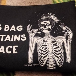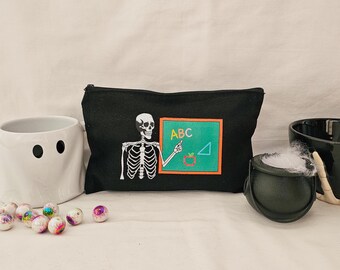 ZHAMEN Gothic Geschenke, Lustige Skelett Schädel Make Up Tasche, Gothic Zubehör, Gruselige Geschenke, Gothic Kosmetiktasche, Halloween Partygeschenke, Schwarz 01246, 10.5"x 7"x 2.5
