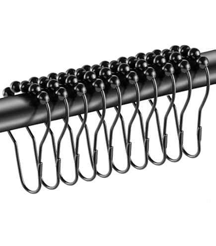 ZSLJSWDZ 12 Stück Zweiseitige Haken,Duschvorhang-Haken,für Duschvorhang,Fenster(schwarz Hochwertiges Metall - Diese doppelt gleitenden Duschvorhangringe bestehen aus hochwertigem und ausgewähltem Metall, das effektiv rostbeständig ist. Beschichtet und poliert - Die Beschichtung wird auf der Abdeckung von doppelseitigen Duschvorhanghaken plattiert und poliert, um als elegantes Dekor für Ihr Badezimmer verwendet zu werden. 12er... Duschvorhanghaken 12er Set, Doppelseitige Duschhaken, Rostfreie Metall Duschvorhangbügel für Badezimmer Duschstangen Vorhang, Schwarz Korrosionsbeständige Struktur: Hergestellt aus Edelstahl und mit einem Galvanikverfahren behandelt, sind diese doppelseitigen Vorhanghaken so konzipiert, dass sie Rost und Korrosion standhalten, wodurch sie ideal für das Badezimmer sind. Küchen- und Haushaltsartikel online - Duschvorhanghaken Set mit 12 Stück, doppelseitige Duschhaken, rostfreie Metall-Duschvorhangaufhänger für Badezimmer, Duschstangen, Vorhang, Nickel Metall Duschvorhanghaken, 12er Set, Rostfrei Duschvorhanghaken Ringe, Langlebig S-förmige Haken Kleiderbügel für Duschvorhänge, Küchenutensilien, Kleidung, Handtücher (Schwarz Rollkugel-Design: Mit einzigartigen kugelförmigen Rollkugeln, gleiten diese Duschvorhanghakenringe mühelos entlang der Duschvorhangstange, ohne Kratzer zu verursachen. 2-in-1-Duschhaken: Die doppelten Duschvorhanghaken ermöglichen ein separates Aufhängen von Duschvorhang und Liner und bieten Komfort und Vielseitigkeit.