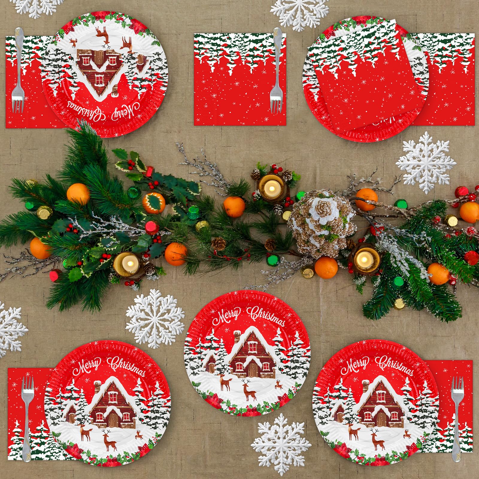 ZVK Weihnachsstern Pappteller, Servietten, Pappbecher 96 Stück Partygeschirr Set Rot Weihnachts Tischdeko, Geschirrdeko