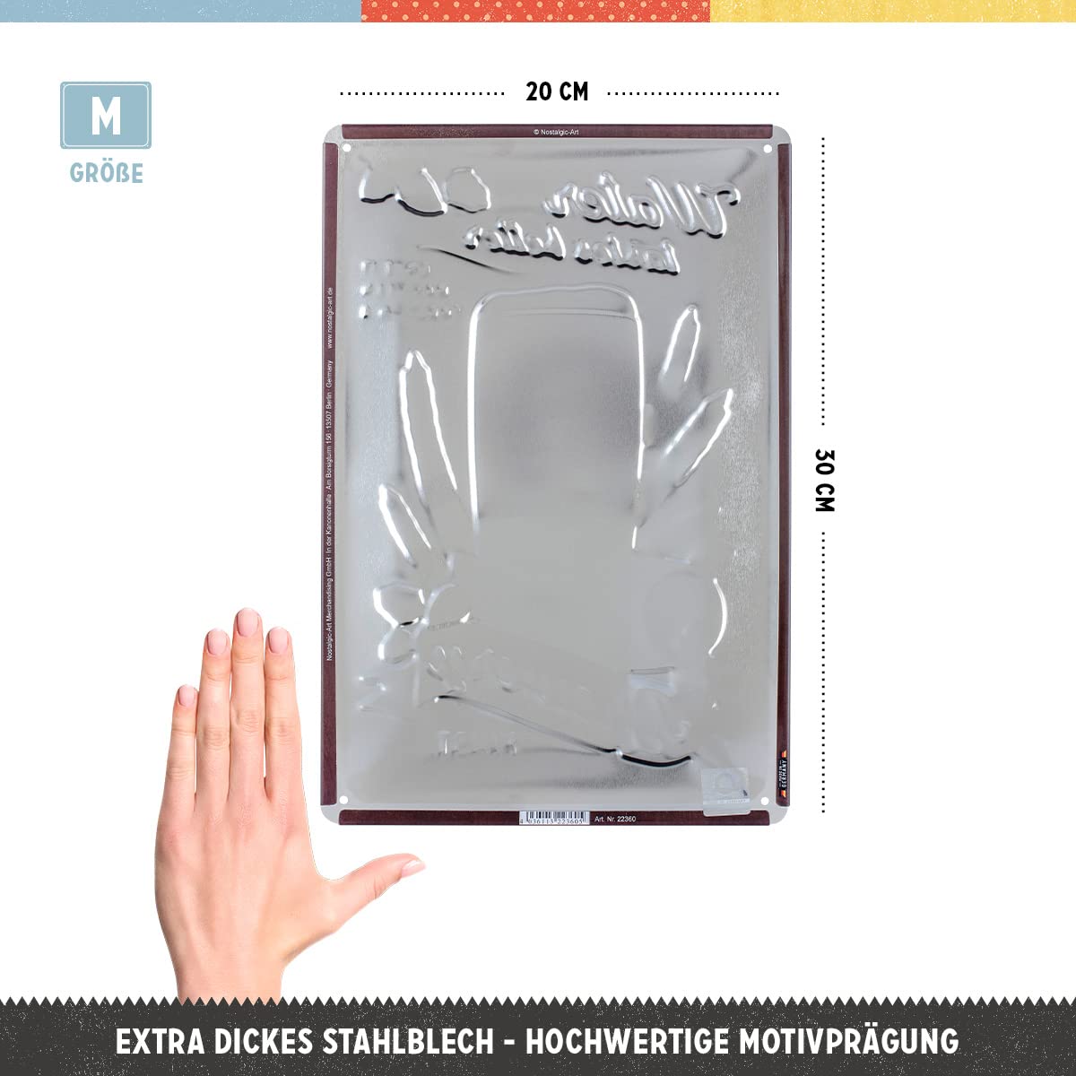 BIER GESCHENK: für Bier-Liebhaber, besonders hochwertiger und farbenfroher Druck in 1A Qualität Je nach Größe reichen Klebepunkte oder kleine Nägel aus. Blechschild Retro Nostalgic-Art Blechschild Lieblingstier Zapfhahn 20 Cm X 30 Cm Kaufen Bei Retro Schilder Gibt es das Motiv in weiteren Größen? Ja, wir haben eine große Auswahl verschiedener Motive und Größen. Klicke dafür auf den Link unter dem Produktnamen Besuche den Nostalgic-Art-Store. Durch einen hohen Anteil an Handarbeit ist ein Höchstmaß an Qualität sichergestellt. 1 1A Qualität 2 Ansprechende Deko 3 Brillanter Druck 4 3D Motivprägung 5 Edler Gesamteindruck Welche Qualitätsunterschiede gibt es bei Blechschildern? Es gibt dünne Blechschilder und die Nostalgic-Art Blechschilder, die auf besonders dickem Stahlblech hergestellt werden. Nostalgic Art Blechschilder (2025 MADE IN GERMANY: hochqualitative Verarbeitung, in Deutschland gefertigt PRAKTISCH UND FARBENFROH: robustes Metall-Schild im Format DIN A4 mit plastischer Wölbung, Motivprägung und vorgebohrten Löchern zur kinderleichten Anbringung mit Nägeln an der Wand Nostalgic Art Blechschilder bei : Top-Marken Günstige Preise Riesen Auswahl - Jetzt super Angebote entdecken und online kaufen Zeigt das Design eine bekannte Marke, handelt es sich garantiert um ein offiziell lizenziertes Produkt. Nostalgic-Art - Blechschild 20 x 30cm - Vespa - Parking Only Handelt es sich bei den Artikeln um offizielle Lizenz-Artikel? Ja!