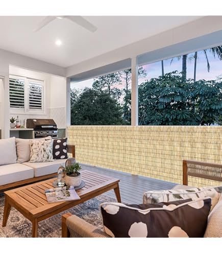 Fühlen Sie sich frei, Fragen im Voraus zu stellen, um sicherzustellen, dass Ihre Außenzaunbehandlung genau so wird, wie Sie es erwarten. Verwenden Sie ihn als Garten-, Balkon- oder Terrassenzaun, um Tiere von Pflanzen fernzuhalten oder die Privatsphäre zu erhöhen. 【Umweltfreundliche Dekoration】Unsere Balkonabdeckungen für Wohnungen bestehen aus 100 % natürlichen Bambusschilfmaterialien, langlebig, umweltfreundlich und atmungsaktiv, was die Schönheit der natürlichen gewebten Materialien betont. Natürliche Schilfzäune verwenden sie, um unattraktive Gegenstände oder alte Zäune zu verstecken, mehr Privatsphäre zu schaffen, Ihrem Balkon/Terrasse Schatten zu spenden, Haustiere daran zu hindern, vom Balkon zu springen, den Swimmingpool zu schmücken und Ihrem Raum ein rustikales und natürliches Aussehen zu verleihen. Schilfmatte Sichtschutz Bambusrollo Schilf Sichtschutz Zaun,Wetterfest Sonnenschutz Gartendeko Schilfrohrmatten Für Garten 【Halten Sie Ihren Raum kühler】Unser Sichtschutzzaun lässt Luft und Wind durch und dehnt sich fest für ein knitterfreies Aussehen. Bitte kontaktieren Sie uns, wenn aus herstellungsbedingten Gründen ein Produkt defekt ist. Er schützt Sie vor der Sonne, senkt die Innentemperatur und hält Ihren Raum an sengenden Sommertagen kühler. Schilfrohrmatte ST. TROPEZ - Naturprodukt - In- und Outdoor Sichtschutz - 160x600 cm - Blickschutz und Dekorationselement in Einem (0 Unser Kundendienstteam hilft Ihnen gerne weiter. 【Multi-Szene kann verwendet werden】Unsere Bambus-Zaunrollen sind ideal für Balkone von Eigentumswohnungen/Apartments, Hinterhöfe, Terrassen und Versammlungsbereiche, Pools und Terrassen oder überall dort, wo Sie ein wenig Privatsphäre benötigen. Bitte erlauben Sie 1-2 cm Abweichung aufgrund der manuellen Messung. Schilfzäune widerstehen natürlich Wasser, sind robust und langlebig. Sichtschutzzäune Schilf Deals im September 2025 Oder verwenden Sie es, um eine einfache Wand zu verschönern, einen Bereich in Ihrem Garten abzutrennen und so weiter. Einfach und sieht natürlich aus, einfach auf Tischkreissäge gerollt zu schneiden und mit Tacker zu befestigen. Bei finden Sie eine vielfältige Auswahl an Sichtschutzmatten, darunter Bambus Sichtschutz, Schilfmatten und Schilfrohrmatten, die sich perfekt in jede Umgebung einfügen 100% SERVICE:Alle Produkte werden vor dem Versand streng geprüft, also kaufen Sie bitte mit Vertrauen. Es kann leichte natürliche Mängel geben, da das Rollo aus 100 % natürlichem Schilf besteht. Der Zaunschirm bietet 70 % Sichtschutz.