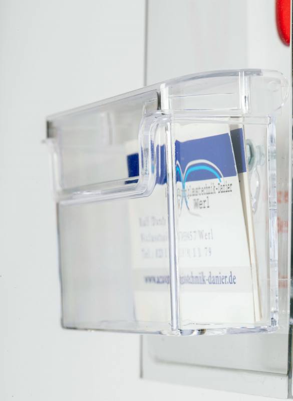 Schutz vor Wind und Regen Die Flyer und Visitenkarten sind in den einzelnen Boxen immer gut vor Wind und Regen geschützt KEIN VERGILBEN DES Materials , WETTERFEST Auch eine Anbauanleitung liegt der Lieferung bei Diese Box fällt auf und lockt Ihre Kunden an Kontaktlose Werbung mit dieser wetterfesten Box mit Deckel Geeignet für das Format DIN LANG und Visitenkarten Auffallend durch Schriftzug Bitte mitnehmen , Aus hochwertigen Acrylglas , Einfache Kontaktlose Werbung Eigene Herstellung am Standort Werl in Deutschland SIGEL LH325 - Outdoor-Prospekthalter acrylic Prospektbox Mit Deckel Flyer Halter Zeigis Prospektbox 2-fach DIN Lang Hoch - Wetterfest Mit Selbstschließendem Deckel Acryl Ständer Klein Flyerhalter Wand Dieser Artikel: Acrylglastechnik Danier Flyerbox Prospektbox wetterfest mit Deckel mit Visitenkartenbox DIN LANG Flyer. Diese Artikel werden von verschiedenen Verkäufern verkauft und versendet. Diese Box fällt Ihren Kunden sicherlich sofort auf. Dafür sorgt der rote Schriftzug Visitenkarten : 85 mm Breite und 55 mm Höhe Einfache Befestigung Die Box lässt sich ganz einfach durch das beiliegende Befestigungsmaterial an der Wand befestigen. Mit unseren wetterfesten Prospektboxen bist du auf der sicheren Seite. Diese eignen sich ideal für die Außenanwendung und bieten umfassenden Schutz durch einen fest integrierten Deckel. Ebenso bieten wir wetterfeste Varianten für DIN Lang, die deine Flyer perfekt vor Nässe und Wind bewahren Auffallender Schriftzug Diese Box fällt Ihren Kunden sicherlich sofort auf. Zeigen Sie Ihren Kunden was es leckeres bei Ihnen zu Essen gibtIdeal für Restaurants,Schnellimbiss,Auffallend roter Schriftzug SPEISEKARTEGeeignet für das Flyerformat DIN LANGDIN LANG Maße : 105 mm Breite und 212 mm Höheoder einfach gesagt ein 3 x gefaltetes DIN A
