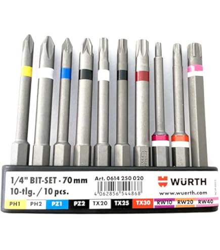 Umfangreich bestücktes Sortiment in den Längen 25 und 70 mm mit RW-, PH-, PZ-, TX-, Innensechskant und Schlitz-Abtrieb in austauschbaren Bitriegeln inklusive Bithalter Bit Sortiment/Set gemischt online kaufen | Würth AG Würth Ratschenkasten Würth 1/4 Zoll Bit Sortiment 10-teilig; Bit Set; 70mm; Gürtelclip, 22,49 Würth Bit Aw Abtrieb Sortiment Würth AW 10-Bit • Naturbaustoffe Erhard Rietz - Hobitzhaus - Bauseelsorger