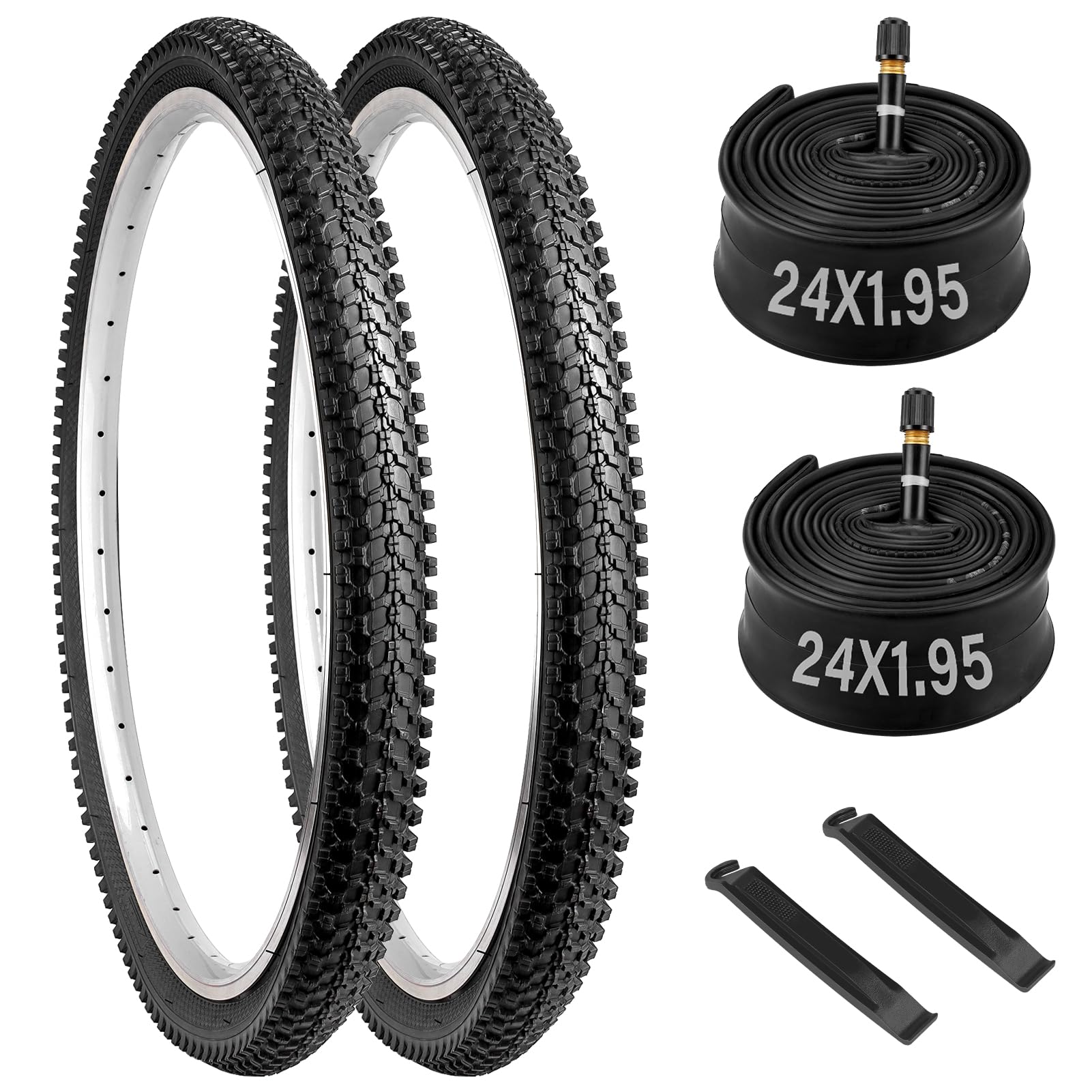 2 Pack Mountainbike Reifen 24 Zoll Faltbare Ersatz Fahrradreifen 24x1.95 24x2.10 24x2.125 Mit 2 Fahrradreifen Innenschläuche Autoventil