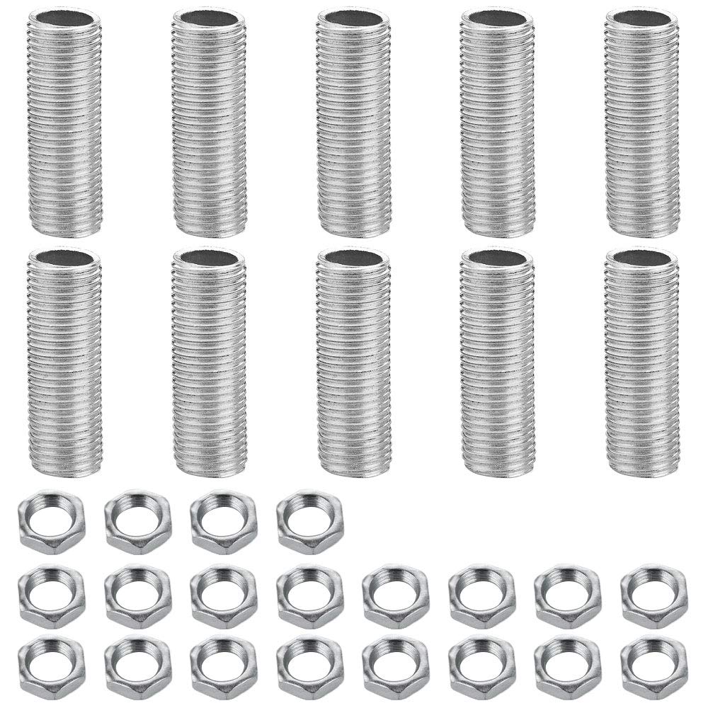 Carkio Lampenrohr-Nippel-Kit, Einschließlich M10-Nippel Mit 50 Mm/2 Zoll Länge Und M10-Mutter, Dicke 3 Mm/0,12 Zoll, Verzinkt, 10 Stück