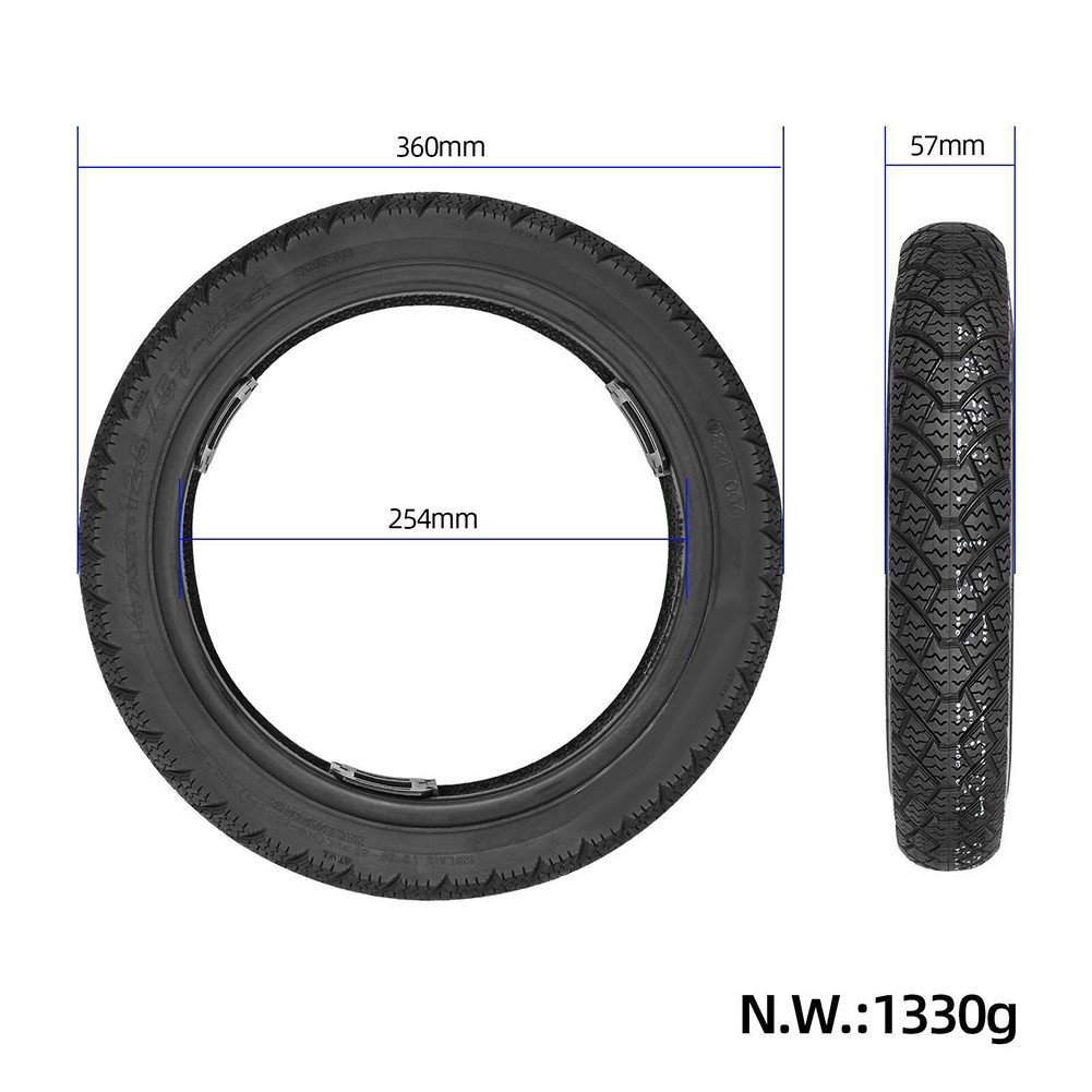BaiWon 2er-Pack14 Zoll Reifen - 14x2,125(57-254) Komfortabler Fahrradreifen Für Optimales Rollen Auf Straßen, Schotter, Waldwege, 14 Zoll Tubeless Reifen, 44-55 PSI