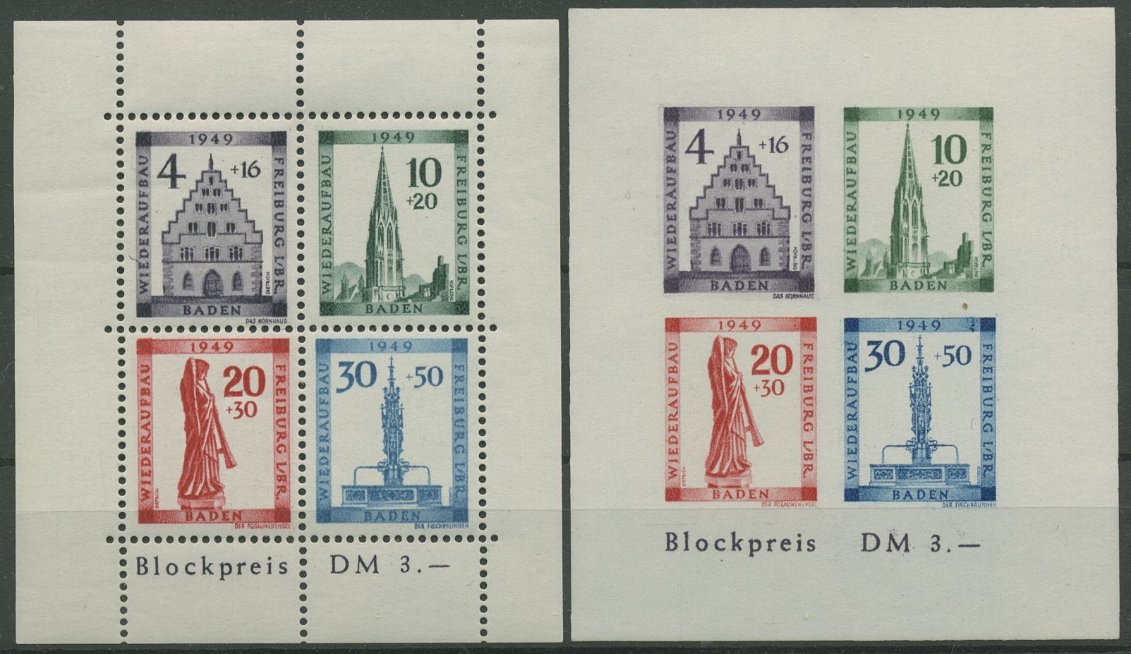 Briefmarken Franz. Zone-Baden 1949 Mi Block1B (kompl.Ausg.) Postfrisch