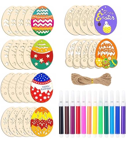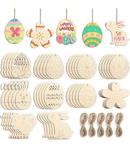 HERZWILD 40pcs Ostern Holzanhänger Zu Bemalen Ostern Basteln Holz Anhänger Ostereier Deko Mit Schnur Holz Anhänger Für Ostern (A