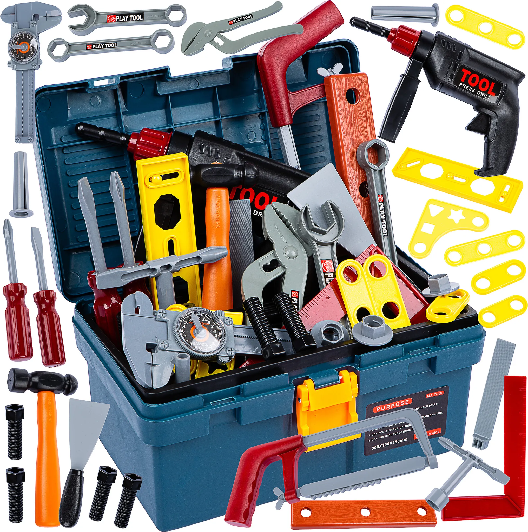 Es werden 2 AA-Batterien benötigt (nicht enthalten)., Warnhinweise Achtung! Produktbeschreibung Mit dem Fix 'n' Play Kit von B. Dieser Werkzeugkoffer fördert die motorische und kognitive Leistung deines Kindes. Produktbeschreibung: Hier ist handwerkliches Geschick gefragt: Mit unserem Kinderwerkzeugkoffer kann dein Nachwuchs sein handwerkliches Geschick testen und ausbauen. B. toys – Fix 'n' Play Kit – Spielzeug-Werkzeugkiste – Werkzeugkasten & Zubehör aus Holz – Schreiner-Set für Kinder – Spielset mit Bohrmaschine, Hammer, Schraubenzieher und mehr – 3 Jahre Eigenschaften: Werkzeugkoffer für Kinder mit 8 Werkzeugen Animiert Kinder zum Ausdenken von Geschichten und zu Rollenspielen Pädagogisch Wertvolles Spielzeug Einzigartiges Design Vielfalt an Werkzeugen Mit interessantem Zubehör wie Lineal oder Schraubstock Alles aus robustem Holz Abgerundete Ecken und Kanten Perfekte Größe Für Kleinkinderhände geeignet, leicht zu halten Koffer mit Trageleine Dank seines Koffers einfach überall hin mitzunehmen Für Kinder ab 2 Jahren Perfekt als Geschenk zum Geburtstag oder zu Weihnachten Lieferumfang: 1 x Multifunktionaler Holzwerkzeugkasten (mit Werkzeugen), von Joyz Technische Daten: Material: Holz Farbe: Natur Maße (LxBxH): ca. 21 x 30 x 8 cm Maße geöffnet (LxBxH): ca. toys können Sie die Arbeit erledigen und jede Menge Spaß beim Bauen haben! Wir empfehlen den Koffer für Kinder ab 2 Jahren. Nicht für Kinder unter 3 Jahren geeignet. Dieser Werkzeugkasten enthält eine elektrische Bohrmaschine mit Bohrer, ein Lineal, einen Hammer, einen Schraubenzieher, einen Schraubenschlüssel, einen Werkzeughalter, 3 Nägel, 6 Muttern und 8 Schrauben. Anschließend können Sie mit dem praktischen Lineal und den bunten Nüssen die Zahlen lernen und das Zählen üben oder mit den kindgerechten Nägeln ein Spiel zum Sortieren von Formen spielen. Holz-Werkzeugkiste - als Bausatz mit Werkzeug für Kinder Werkbank Kinder B. Toys – Spielzeug Werkzeugkoffer Gefüllt – Werkzeugkasten & Zubehör Aus Holz – – Kinderwerkzeug Mit Bohrer, Hammer, Schraubenzieher – Werkzeug Kinder Ab 3 Jahren Toddler Tool Enthält verschluckbare Kleinteile. Das DIY-Set besteht aus traditionellen Werkzeugen mit Zubehör in einer abschließbaren Box, die einen bequemen Griff aus dickem Seil hat. This tool box contains an electric drill with drill, a ruler, a hammer, a screwdriver, a wrench, a tool holder, 3 nails, 6 nuts and 8 screws. Educational toy... Dieses Holzspielset hat alles, was kleine Baumeister in einem praktischen Werkzeugkasten brauchen. Ganz zu schweigen davon, dass dieses Holzspielset die Kreativität anregt und stundenlangen Reparaturspaß bietet!