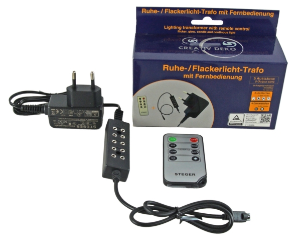 Riffelmacher Ruhe- / Flackerlicht Trafo Mit Fernbedienung 78528 - Zubehör Netzteil Puppenstube Weihnachtskrippe Modelleisenbahn Elektrik Dimmbar Timer