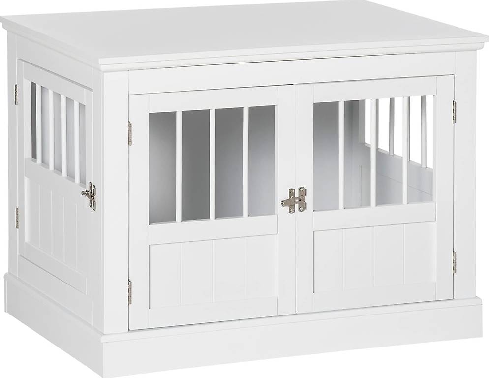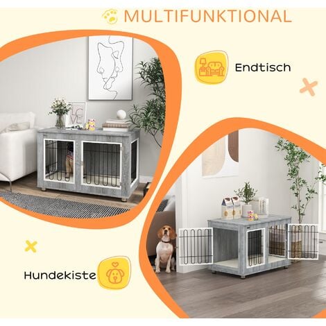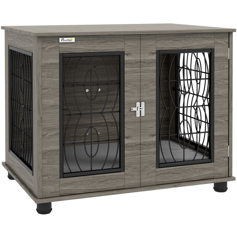PawHut Hundekäfig Möbel Mit Zweiraum-Option, 2 Türen Moderne Metall Hundebox Für Zuhause Indoor Hundehütte Für Große Hunde Bis Zu 30 Kg Hundehaus 120 X 60 X 88,5 Cm Eiche
