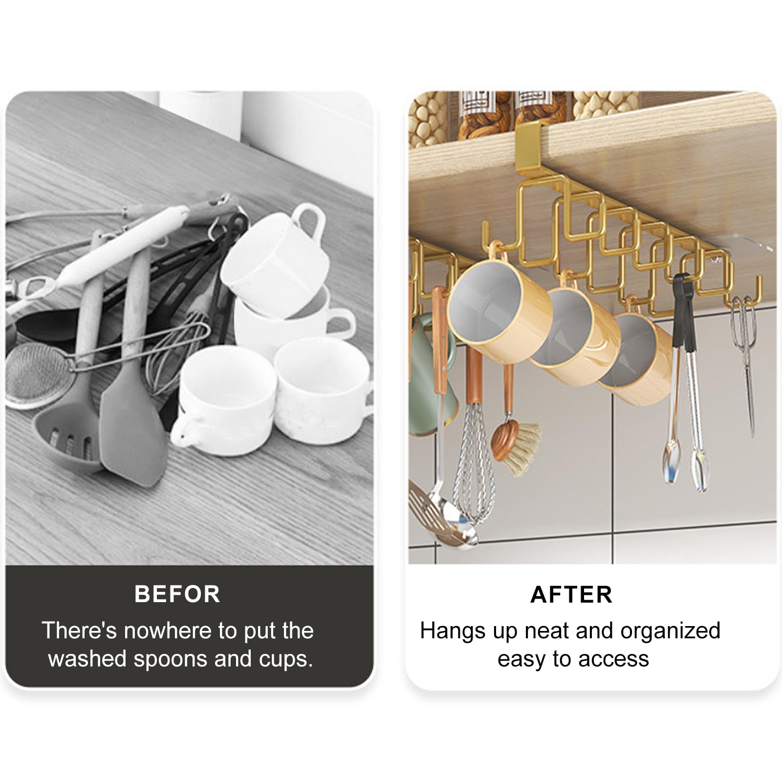 Luckinow Tassenhaken Unter Dem Schrank, 3 Stück, Kaffeetassenhaken Zum Aufhängen Unter Regal, Tassen-Organizer Mit 12 Haken Zum Präsentieren Von Tassen, Kaffeetassen Und Küchenutensilien, Braun