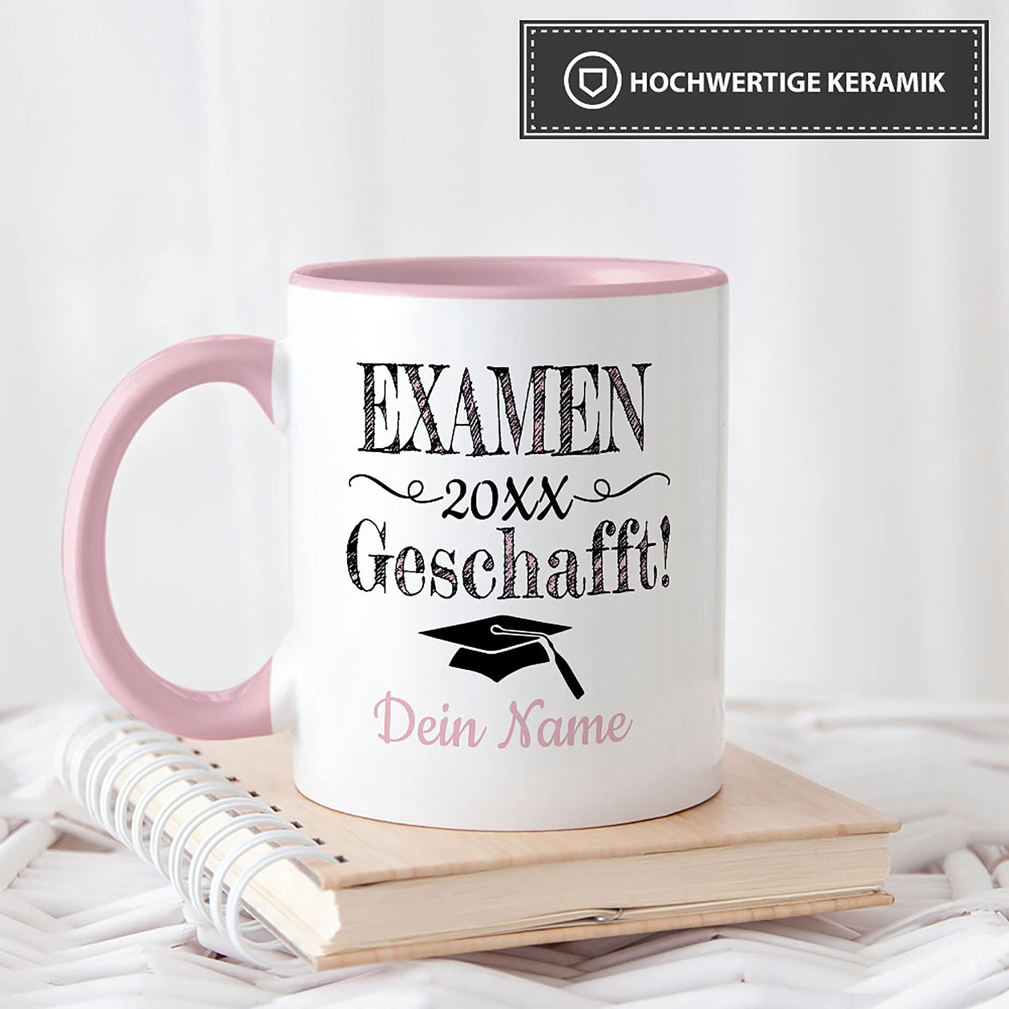 Tasse Mit Spruch - Abschluss Geschafft Master - Zum Selbst Gestalten Mit Wunschname Und Abschlussjahr - Geschenk Für Den Abschluss Zum Master, Henkel & Innen Rosa 300 Ml | Personalisiert