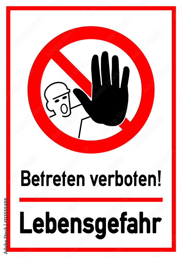 Hinweisschild - Zutritt Verboten! Lebensgefahr - Kunststoff