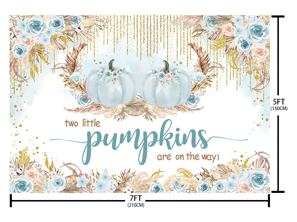 AIBIIN 2,1 X 1,5 M Herbst Kürbis Zwillinge Babyparty Hintergrund Herbst Zwei Kleine Kürbisse Zwei Jungen Sind Auf Dem Weg Willkommen Party Dekorationen Rosa Blau Boho Floral Fotografie Hintergrund